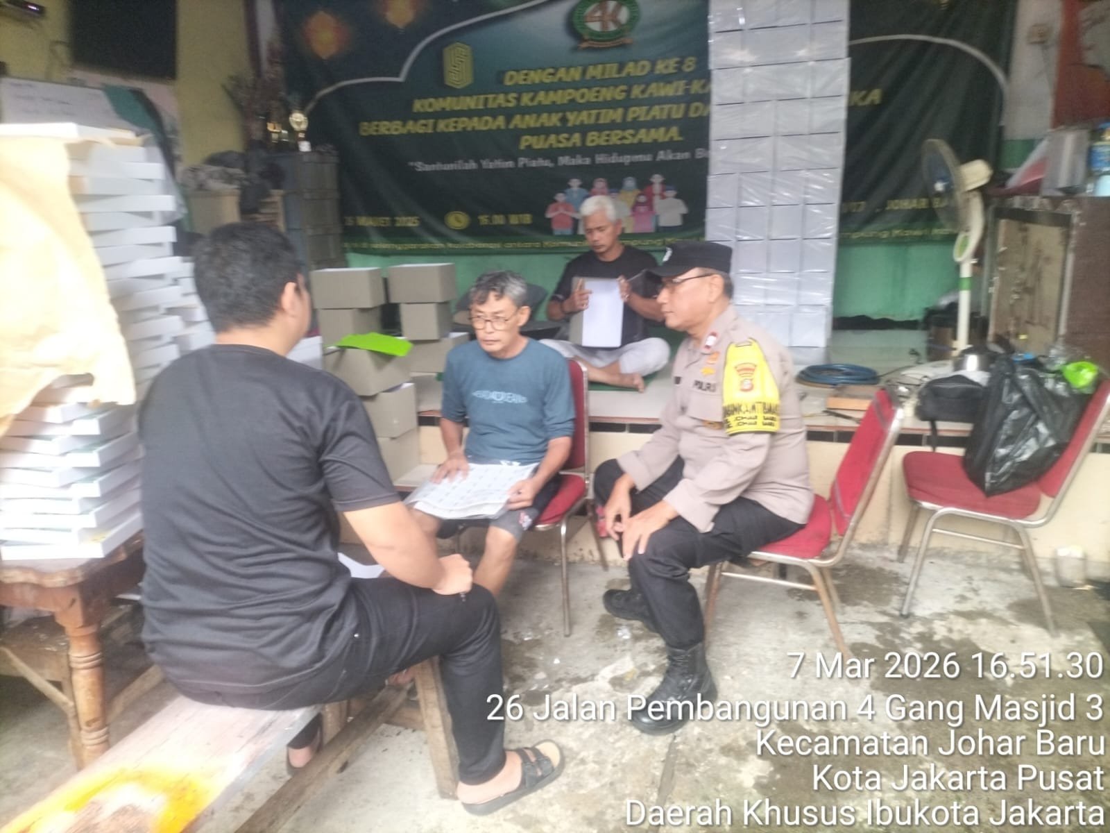 Jakarta Pusat – Dalam rangka menjaga situasi keamanan dan ketertiban masyarakat, jajaran Polsek Johar Baru melaksanakan patroli wilayah sekaligus sambang warga di RW 07 Kelurahan Johar Baru, Kecamatan Johar Baru, Jakarta Pusat, Sabtu (7/3/2026) pukul 16.30 WIB.