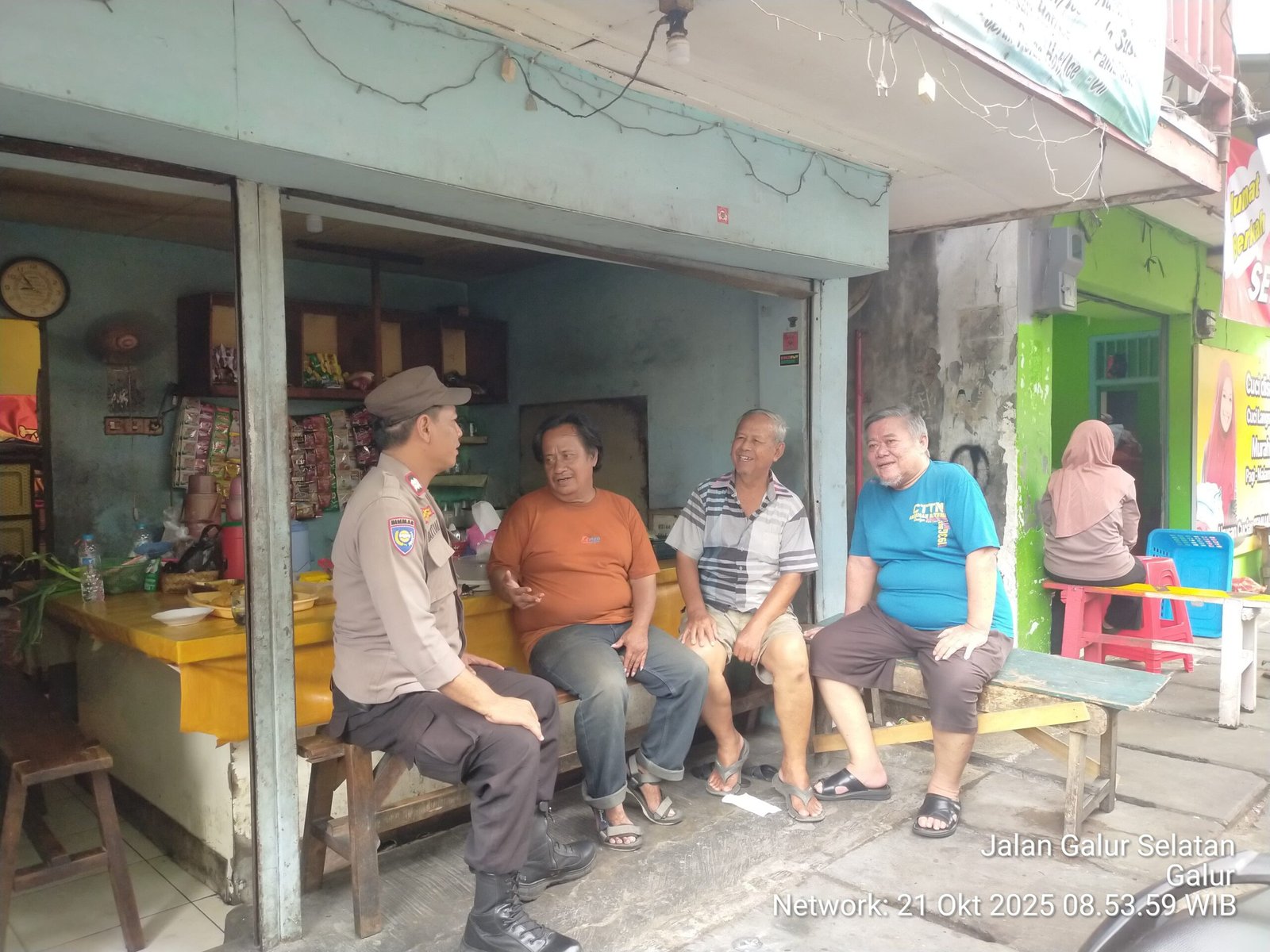 refubliknews.com,- Jakarta Pusat – Dalam rangka menjaga situasi aman dan kondusif, Bhabinkamtibmas Kelurahan Galur, Aiptu Baktiar, melaksanakan kegiatan patroli dan sambang wilayah RW 01, pada Selasa (21/10/2025) pukul 09.30 WIB. Kegiatan berlangsung di Warkop Jl. Galur Selatan RT 002/01, Kelurahan Galur, Johar Baru, Jakarta Pusat.