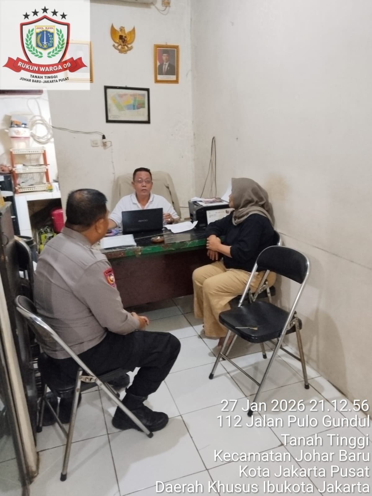Kegiatan yang berlangsung sekitar pukul 21.19 WIB tersebut dilaksanakan di Sekretariat RW 09, Jalan Kramat Pulo Gundul 3, Kecamatan Johar Baru, Jakarta Pusat. Dalam sambang tersebut, Bhabinkamtibmas bertemu Ketua RW 09, Bapak Abdullah, guna menjalin silaturahmi sekaligus bertukar informasi terkait situasi kamtibmas di lingkungan warga.