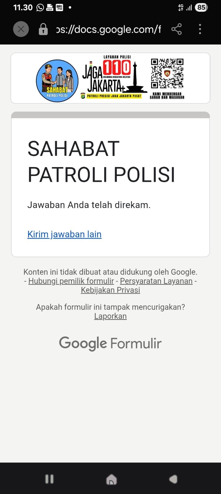 Kapolsek Johar Baru, Kompol Saiful Anwar, menegaskan bahwa inovasi pelaporan ini akan terus disosialisasikan di seluruh wilayah Johar Baru. “Kami ingin masyarakat semakin mudah melapor, sehingga informasi gangguan kamtibmas bisa diterima lebih cepat. Anggota Samapta kami rutin melakukan patroli jalan kaki untuk memastikan imbauan ini tersampaikan dengan baik kepada warga,” ujarnya.