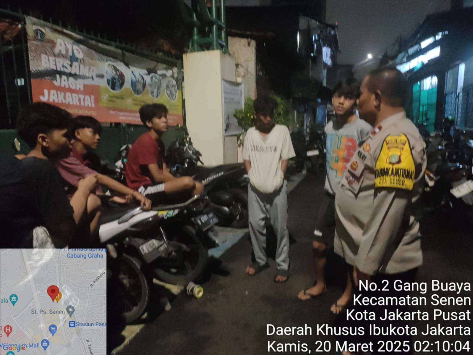 Kapolres Metro Jakarta Pusat, Kombes Pol Susatyo Purnomo Condro, melalui Kapolsek Senen Kompol Bambang Santoso menyampaikan pentingnya peran serta masyarakat dalam menjaga situasi kamtibmas yang kondusif, khususnya menjelang malam hari yang rentan terhadap gangguan.