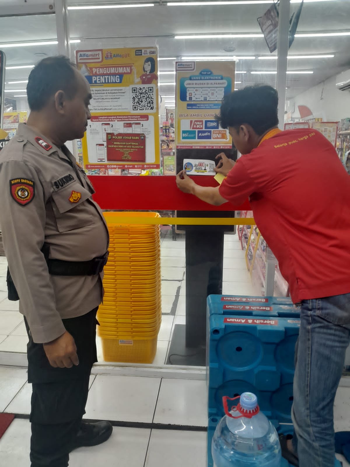 Aiptu Sukirno melakukan dialog langsung dengan karyawan Alfamart, mengingatkan agar selalu memastikan keamanan lingkungan kerja, memperhatikan pintu akses keluar-masuk, serta segera melaporkan jika melihat aktivitas mencurigakan.
