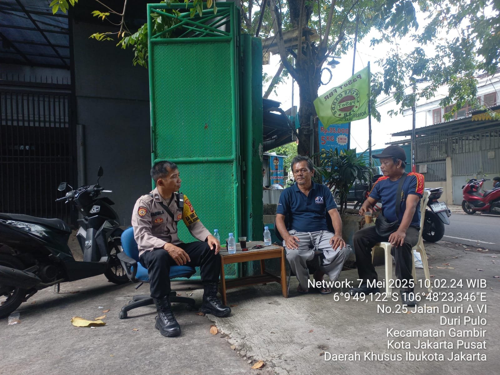refubliknews.com, || Jakarta Pusat – Dalam upaya menjaga keamanan dan ketertiban masyarakat (Kamtibmas), anggota Polsubsektor Roxy Polsek Metro Gambir, Aipda Zaenal Arifin, melaksanakan kegiatan sambang dan patroli kewilayahan pada Sabtu, 10 Mei 2025. Patroli dilakukan di kawasan Jl. Cibunar RW 02, Kelurahan Duripulo, Kecamatan Gambir, Jakarta Pusat.