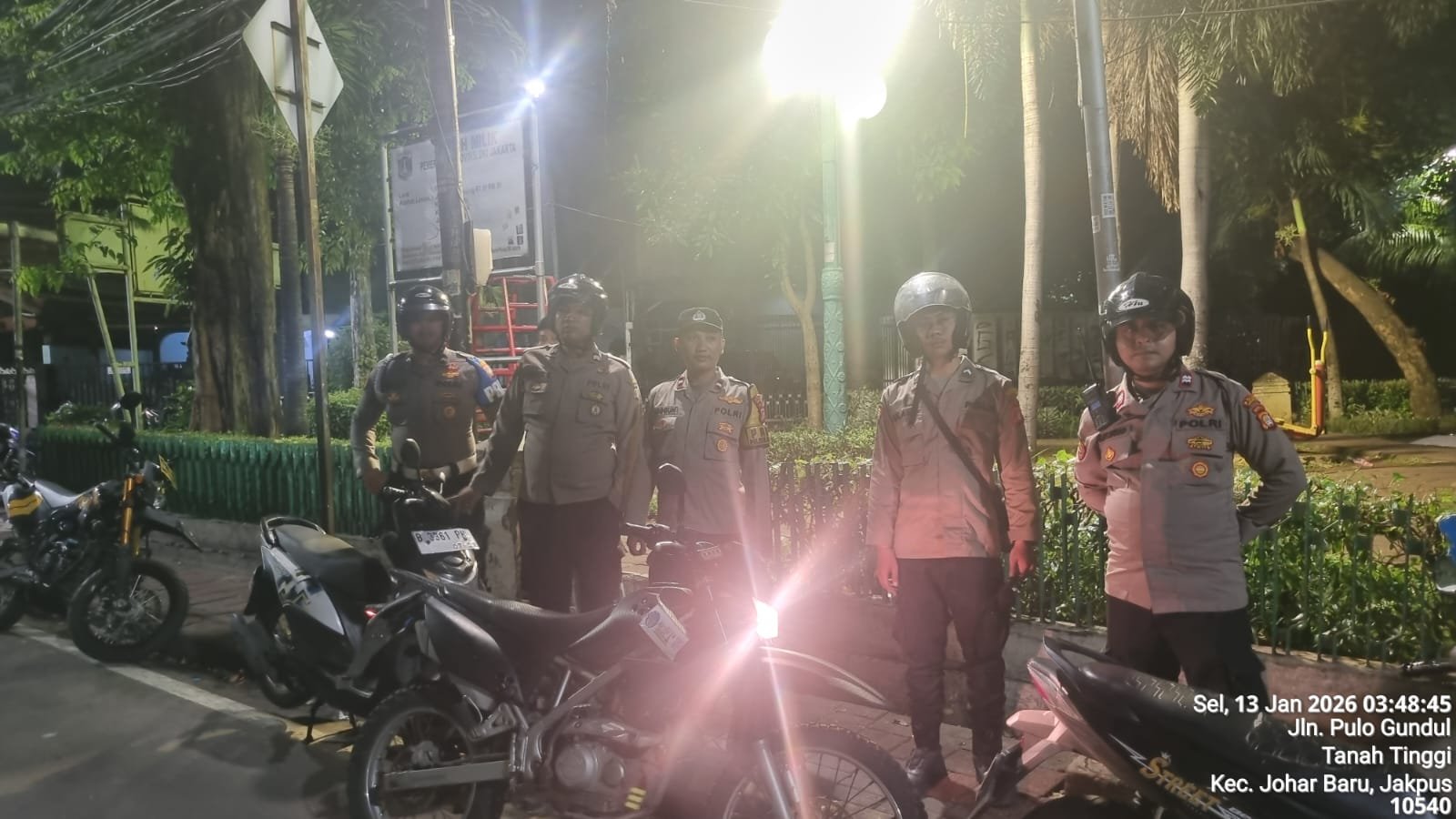 Jakarta Pusat – Jajaran Polsek Johar Baru melaksanakan Patroli Cipta Kondisi untuk mengantisipasi gangguan keamanan dan ketertiban masyarakat (Guantibmas) di wilayah hukumnya pada Selasa (13/1/2026) dini hari. Kegiatan dimulai pukul 02.20 WIB dan berakhir sekitar pukul 03.40 WIB dengan kondisi wilayah aman dan kondusif.