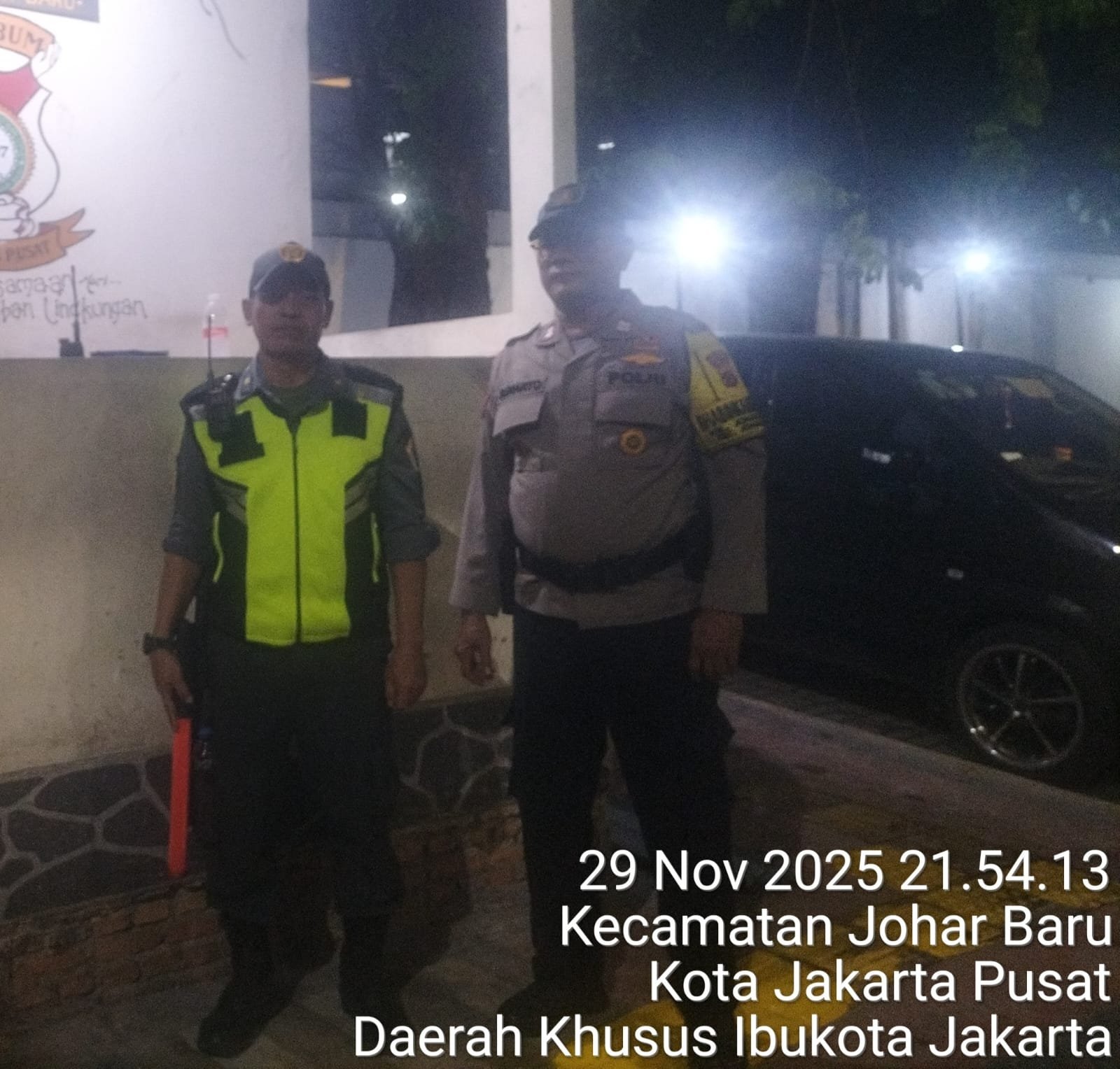 refubliknews.com || Jakarta Pusat — Polsek Johar Baru melaksanakan patroli dialogis dan sambang wilayah, sekaligus cooling system, di Poskamling RW 07, Kelurahan Johar Baru, Sabtu malam (29/11/2025) pukul 23.40 WIB. Kegiatan ini dipimpin Aiptu Sunarto, Bhabinkamtibmas Kelurahan Johar Baru.