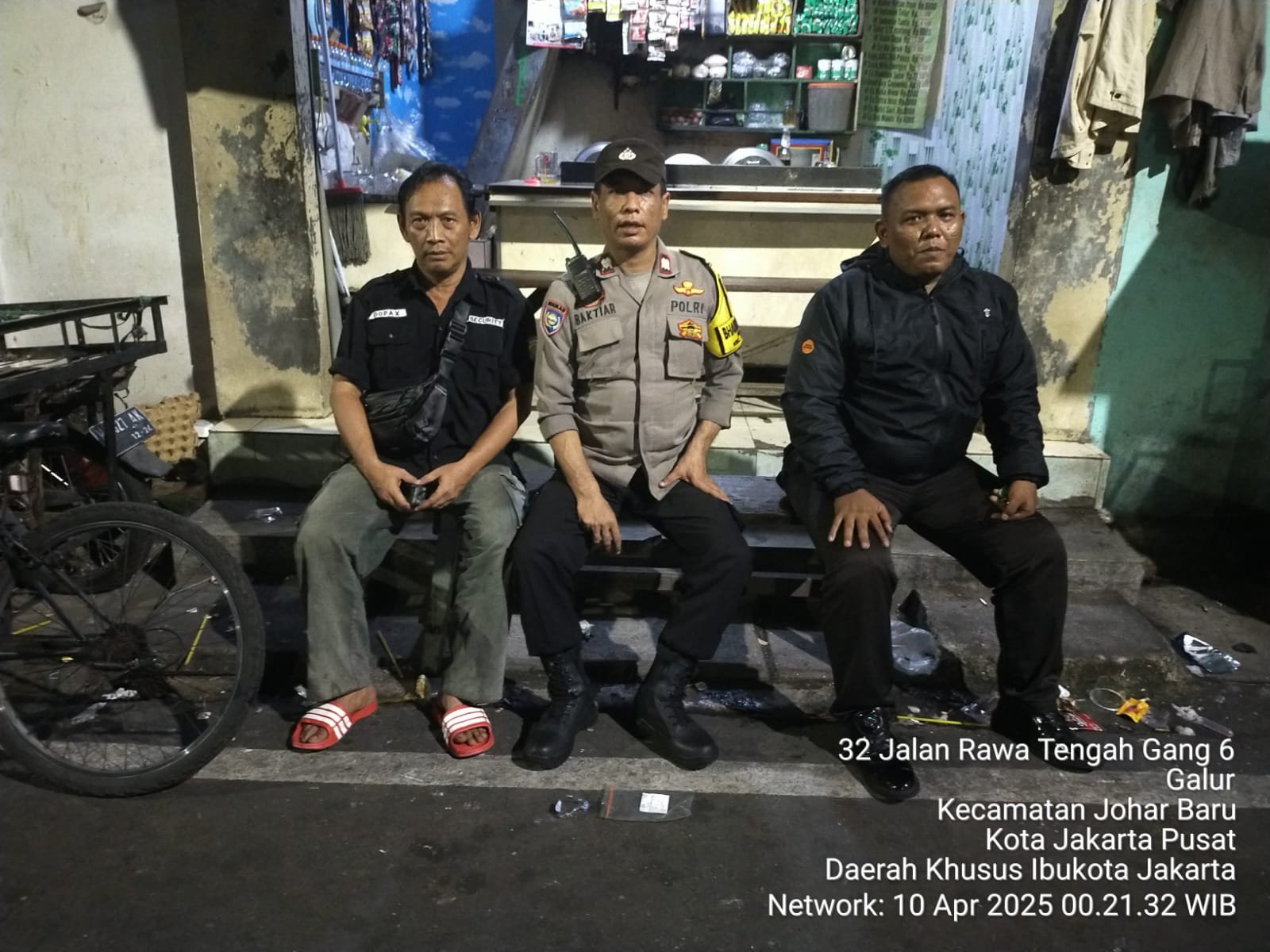 refubliknews.com, || Jakarta Pusat – Dalam upaya menjaga situasi keamanan dan ketertiban masyarakat (kamtibmas), jajaran Polres Metro Jakarta Pusat terus aktif melakukan patroli malam. Pada Kamis (10/4/2025) dini hari, Bhabinkamtibmas Kelurahan Galur, Aiptu Baktiar, bersama Forum Kewaspadaan Dini Masyarakat (FKDM) Galur, melakukan patroli dan sambang di kawasan Jalan Galur Jaya, RW 04, Kecamatan Johar Baru.