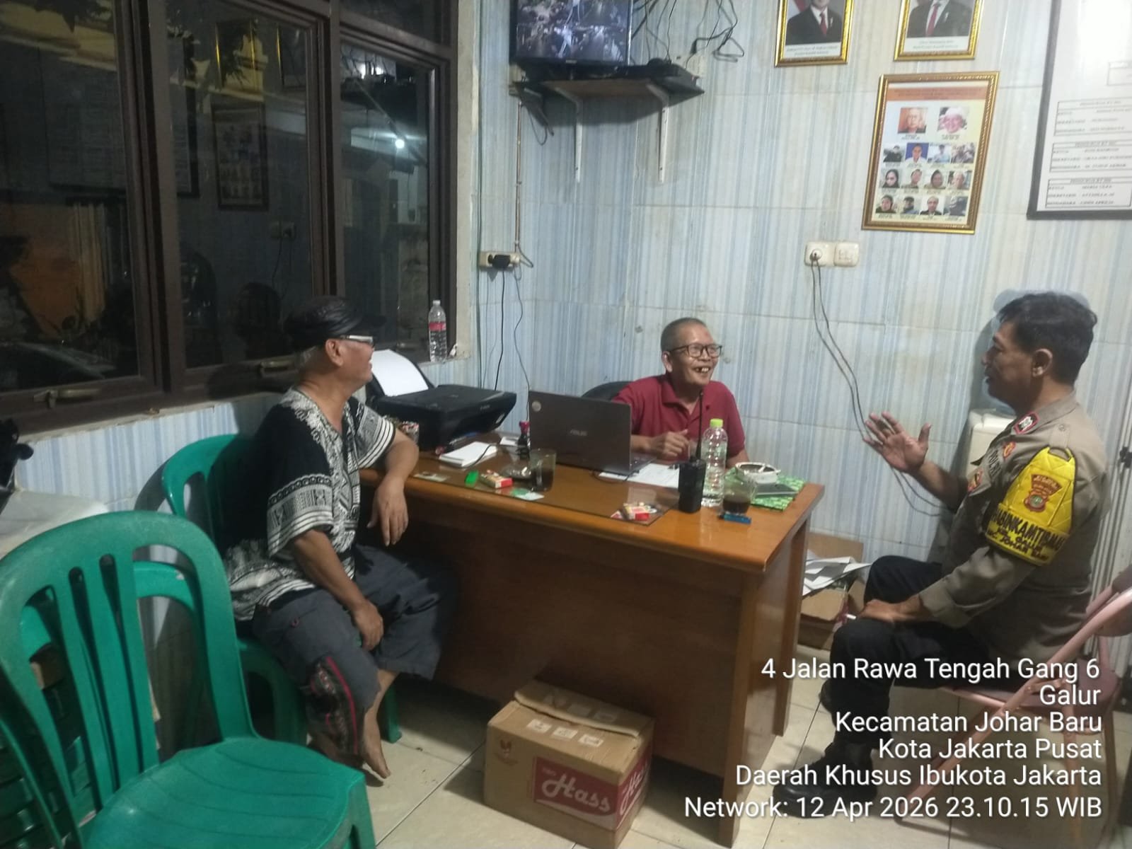 refubliknews.com, || Jakarta Pusat – Aparat kepolisian terus menggencarkan patroli malam dan sambang warga sebagai upaya menjaga keamanan dan ketertiban masyarakat (kamtibmas). Kegiatan tersebut dilakukan di Pos Kamling RW 06, Jalan Rawa Tengah, Kelurahan Galur, Johar Baru, Jakarta Pusat, pada Minggu (12/4/2026) sekitar pukul 23.00 WIB.