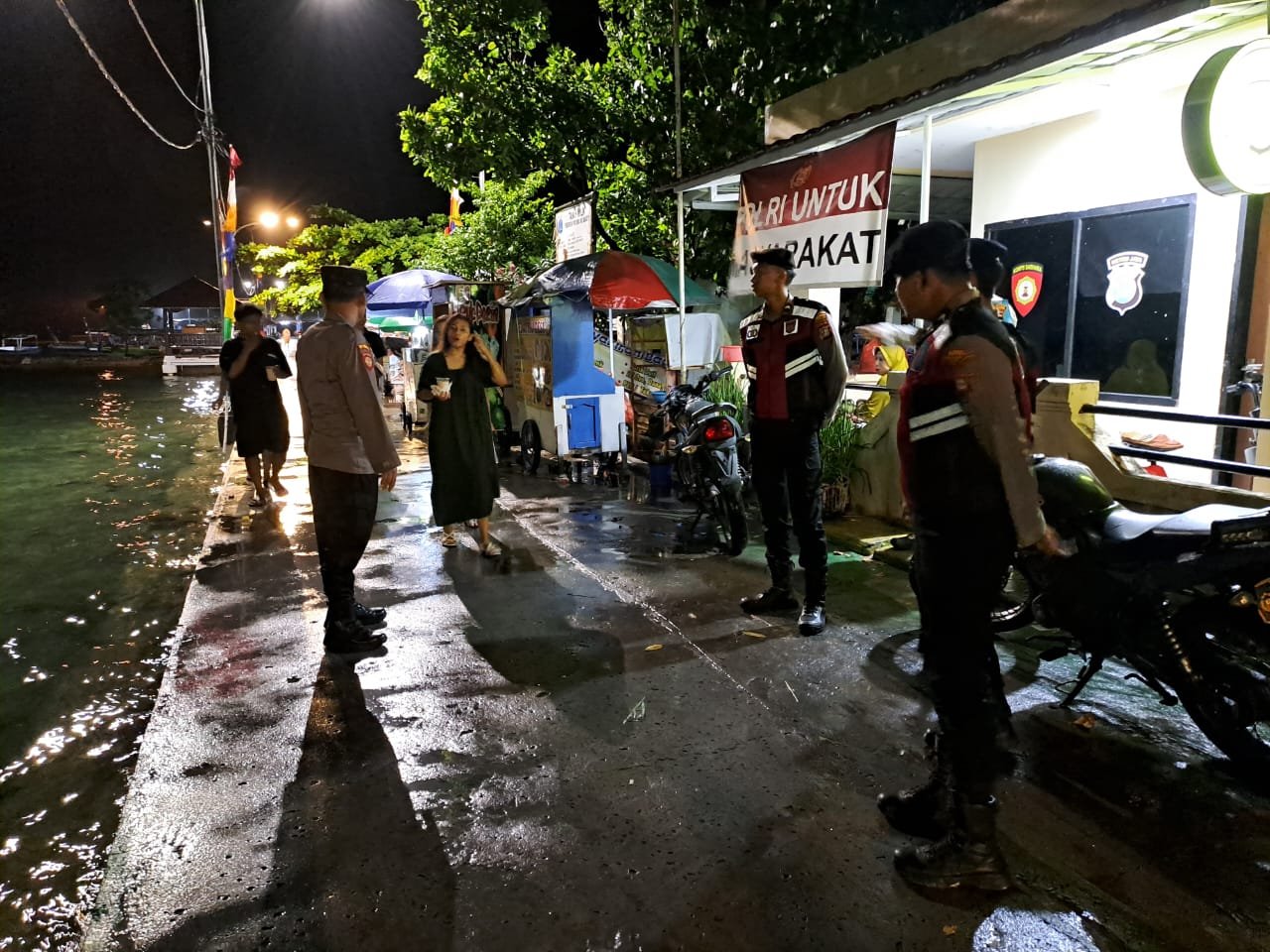 Personel Sabhara Polsek KSU turun langsung menyapa warga dan wisatawan di tempat umum serta pemukiman, memberikan imbauan agar menjauhi perilaku negatif yang dapat mengganggu ketertiban. Petugas juga membubarkan kerumunan pemuda yang dinilai berpotensi menimbulkan tawuran, serta memeriksa kendaraan bermotor di sekitar dermaga Pulau Kelapa yang hasilnya tidak ditemukan pelanggaran.