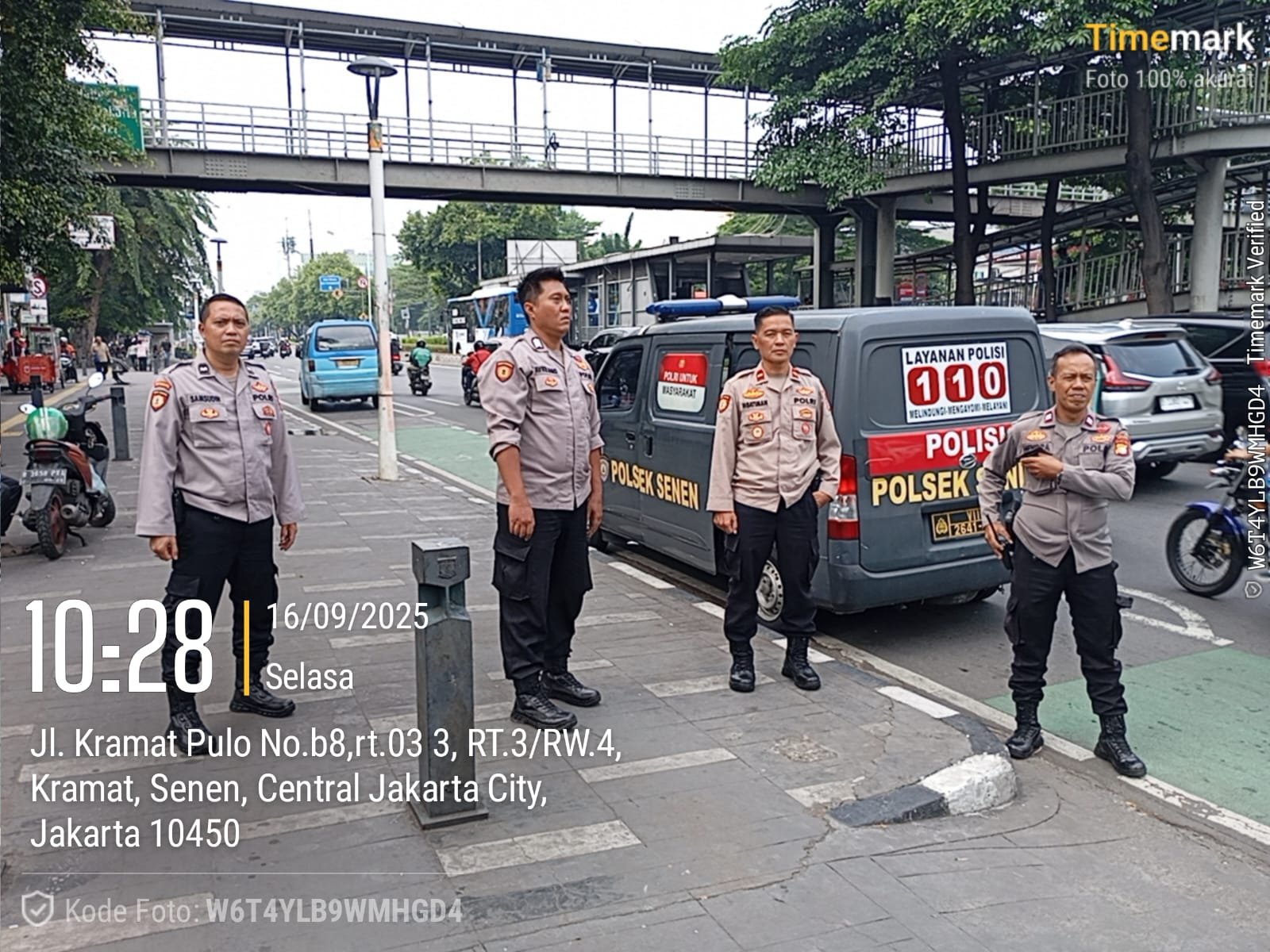 refubliknews.com, || Jakarta – Untuk menjaga situasi kamtibmas tetap aman dan kondusif, Polsek Senen melaksanakan patroli mobile di sepanjang Jalan Kramat Raya, Kelurahan Kramat, Kecamatan Senen, Jakarta Pusat, Selasa (16/9/2025).