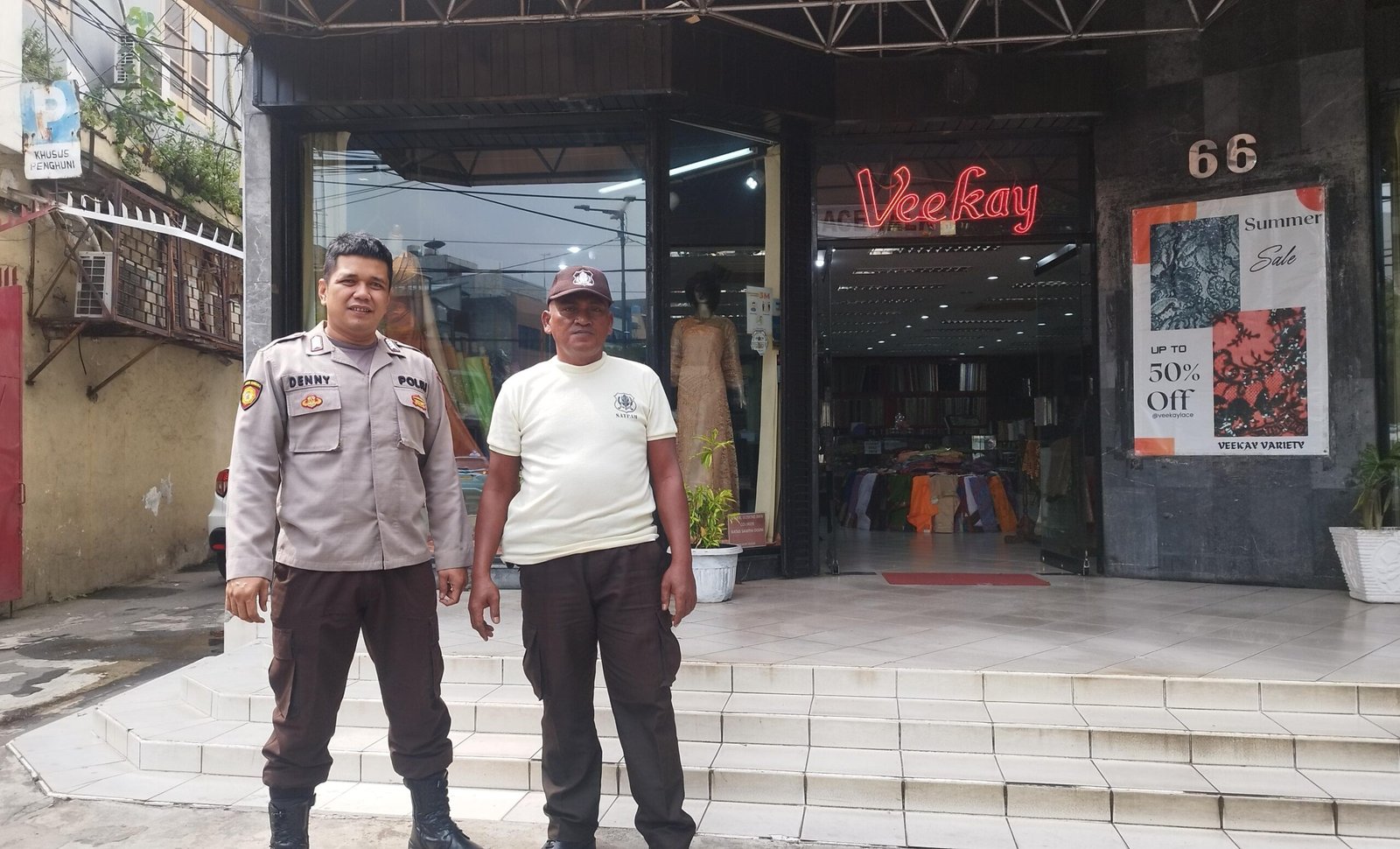 Patroli yang di lakukan oleh Bripka Denny Setiadi tersebut menyambangi petugas keamanan komplek, Gunawan, untuk memberikan imbauan terkait potensi gangguan kamtibmas, khususnya pencurian kendaraan bermotor di area parkir toko.