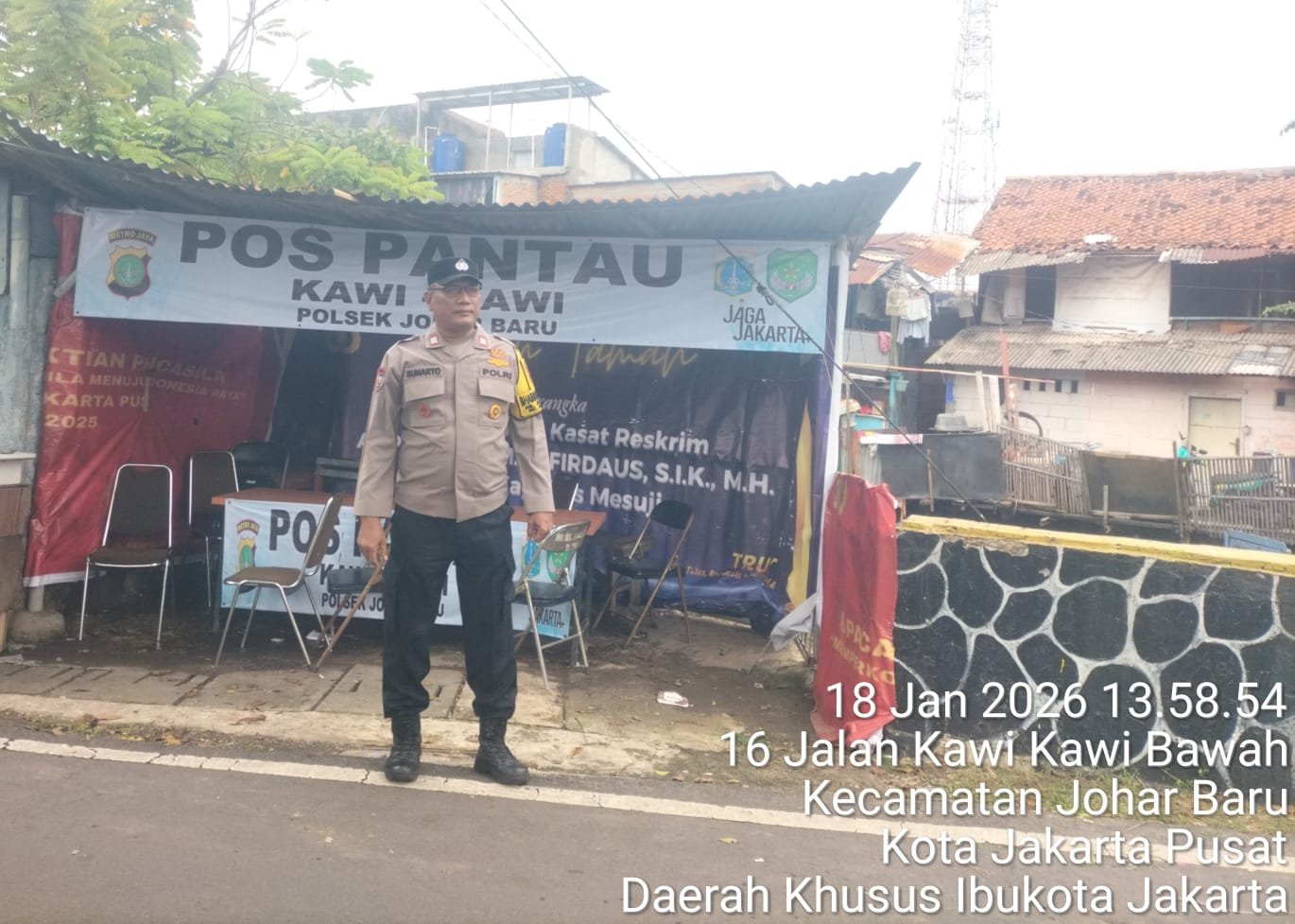 Jakarta Pusat – Kepolisian terus meningkatkan upaya preventif guna menjaga keamanan dan ketertiban masyarakat (kamtibmas), khususnya di wilayah perbatasan yang rawan gangguan. Salah satunya melalui patroli wilayah yang dilaksanakan di Pos Pantau Kawi-Kawi Bawah, RT 02/RW 08 Kelurahan Johar Baru, Kecamatan Johar Baru, Jakarta Pusat, Minggu (18/1/2026) siang.