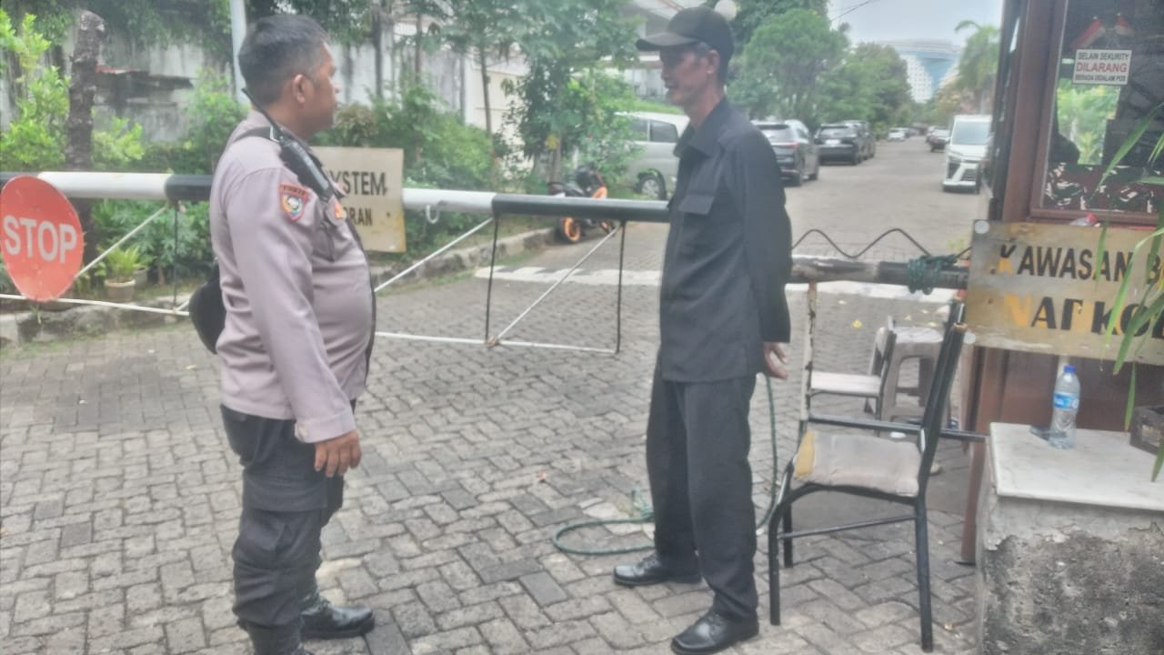Dalam kegiatan tersebut, Aipda Mahajin bertemu dengan Ahmad, petugas keamanan lingkungan setempat. Keduanya melakukan koordinasi dan bertukar informasi mengenai situasi kamtibmas di kawasan permukiman.