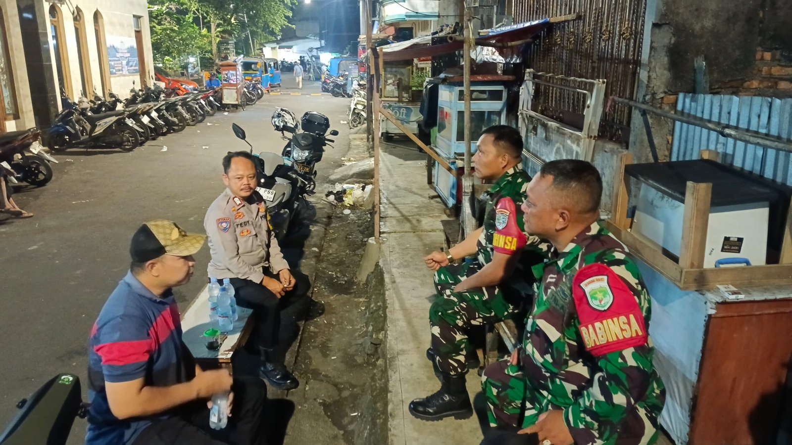 Petugas yang terlibat dalam giat tersebut adalah Bripka Tedy Kurniawan dari Piket Binmas Polsek Kemayoran, bersama Sertu R. Sitorus dan Serda Heri P. dari Koramil setempat. Mereka menyambangi pos keamanan lingkungan sebagai bagian dari upaya menjaga ketertiban dan mencegah gangguan kamtibmas di wilayah padat penduduk tersebut.