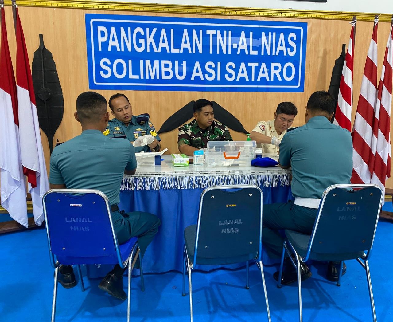 refubliknews.com, – TNI AL, Nias,- Peduli akan kesehatan dan keselamatan Personel Lanal Nias, Kepala Balai Pengobatan Lanal Nias Letda Laut (K) dr. Bimasena T. Nugroho, MARS., sebagai Narasumber memberikan penyuluhan tentang HIV, bagaimana cara mencegahnya dan diakhiri dengan Screening HIV menggunakan sampel darah kepada seluruh prajurit Lanal Nias, Rabu (20/6/2024).