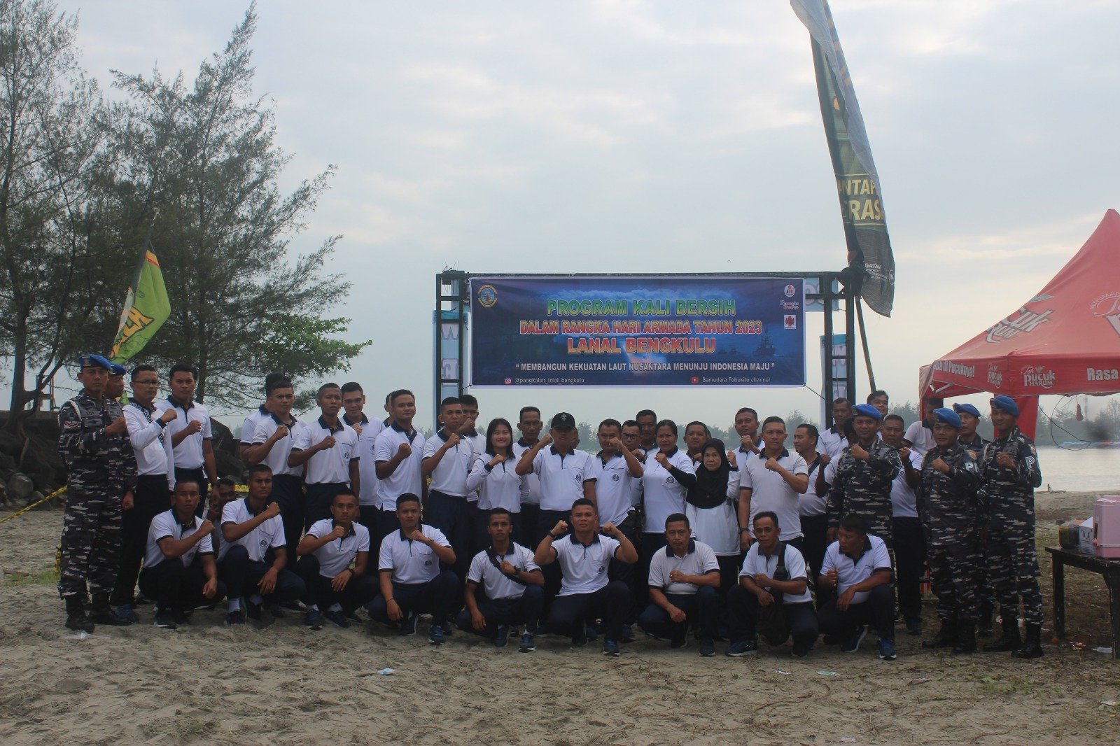 TNI AL, Bengkulu,- Dalam rangka memeriahkan Hari Armada Tahun 2023, Pangkalan TNI Angkatan Laut Bengkulu menggelar kegiatan Program Laut Bersih (Prolasih) di lokasi Kampung Bahari Nusantara Pantai Tapak Paderi, Kelurahan Kebun Keeling Kota Bengkulu, Minggu (26/11/2023).