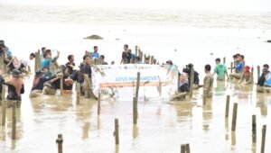 Pada kesempatan ini, personel Lantamal XII Pontianak beserta warga Desa Sungai Bakau Kecil bekerjasama menanam bibit mangrove demi cegah abrasi pantai dan nantinya bisa menjadi wisata mangrove seperti kota-kota besar lainnya.