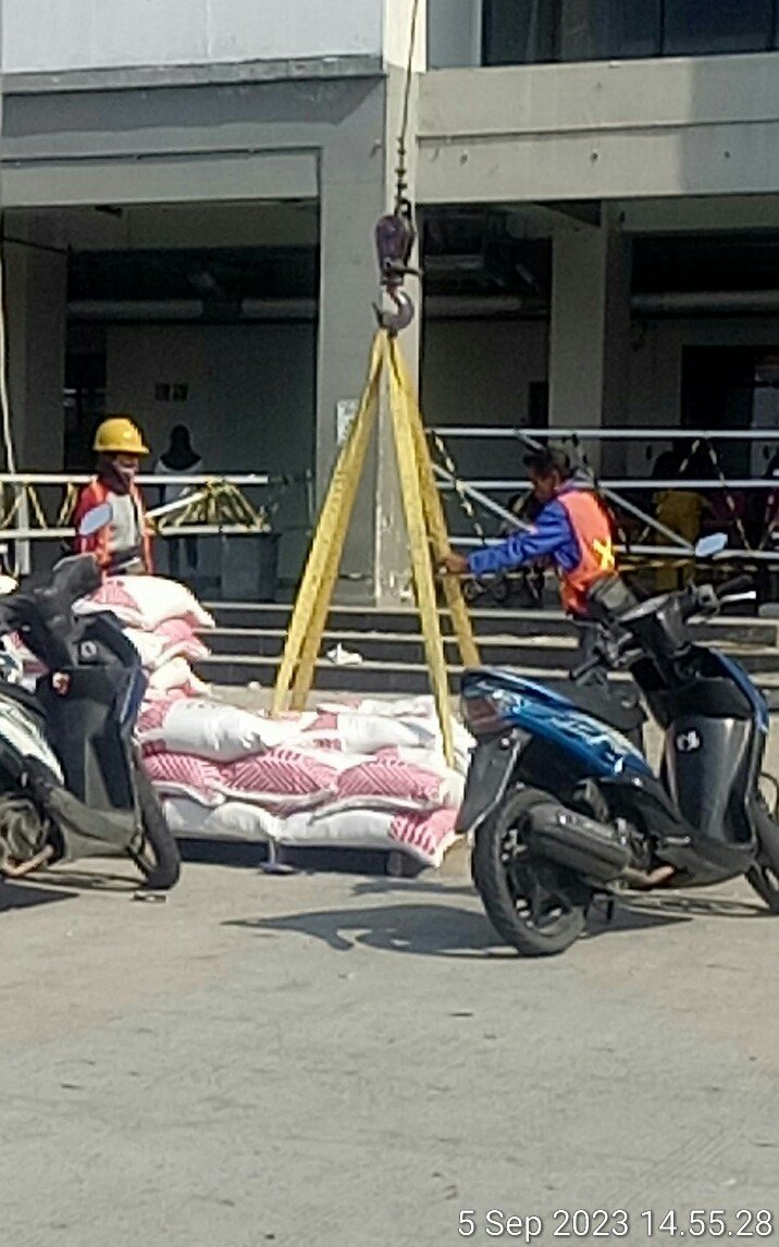 Ketika di konfirmasi oleh awak media pihak pelaksana PT. Ambalat Jaya Abadi yang diwakili oleh Bram selaku pimpinan proyek mengakui insident jatuh nya material berupa beberapa karung batu krikil merupakan kelalai pekerja.