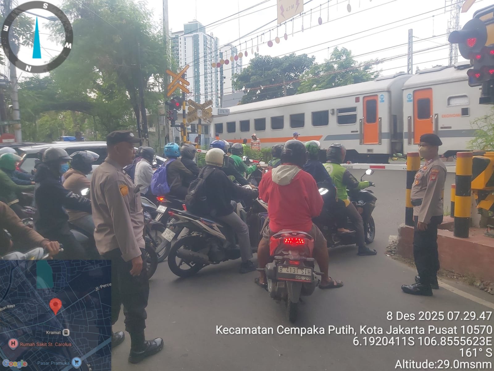 Kegiatan ini bertujuan memastikan arus lalu lintas tetap lancar, aman, dan kondusif, terutama di persimpangan dan pelintasan kereta api yang rawan kepadatan.