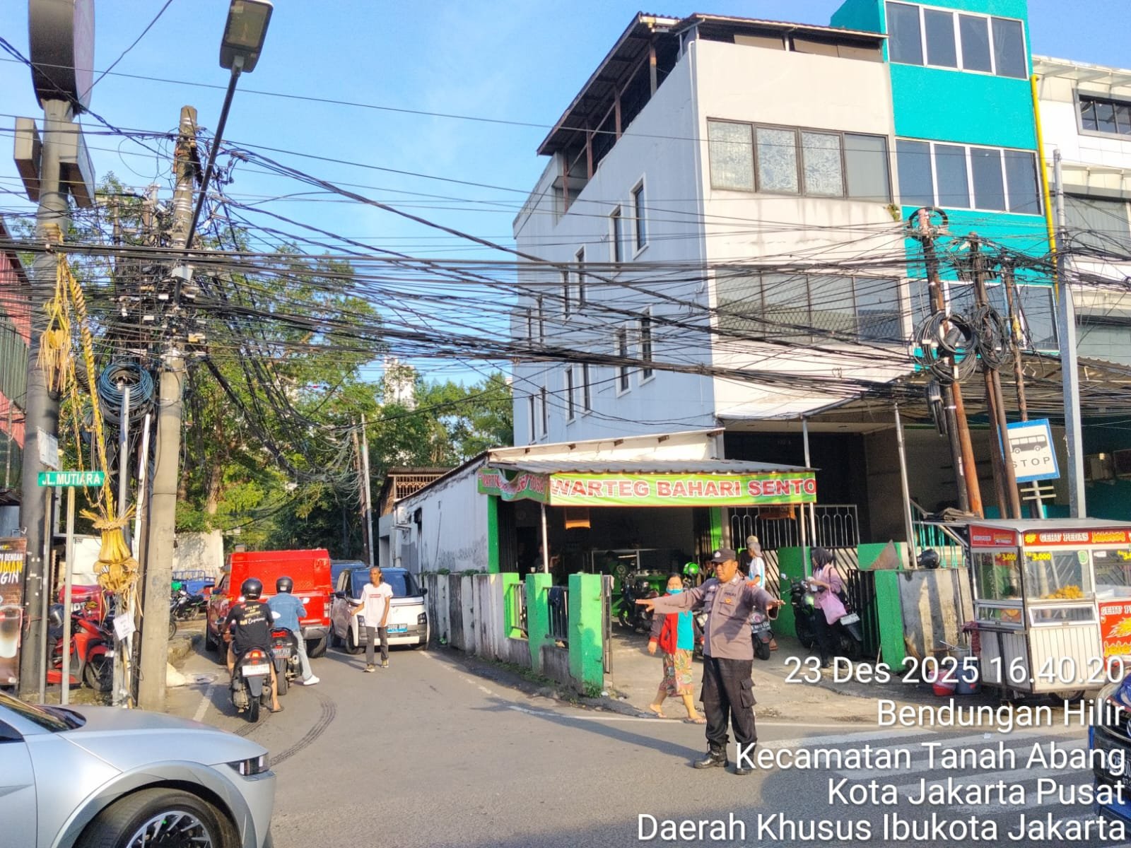 Jakarta Pusat – Dalam upaya memberikan rasa aman dan nyaman kepada masyarakat pengguna jalan, personel Polsek Metro Tanah Abang melaksanakan kegiatan pengaturan arus lalu lintas pada sore hari di Pertigaan Mutiara, Benhil, Tanah Abang, Jakarta Pusat. Selasa, (23/12/2025).