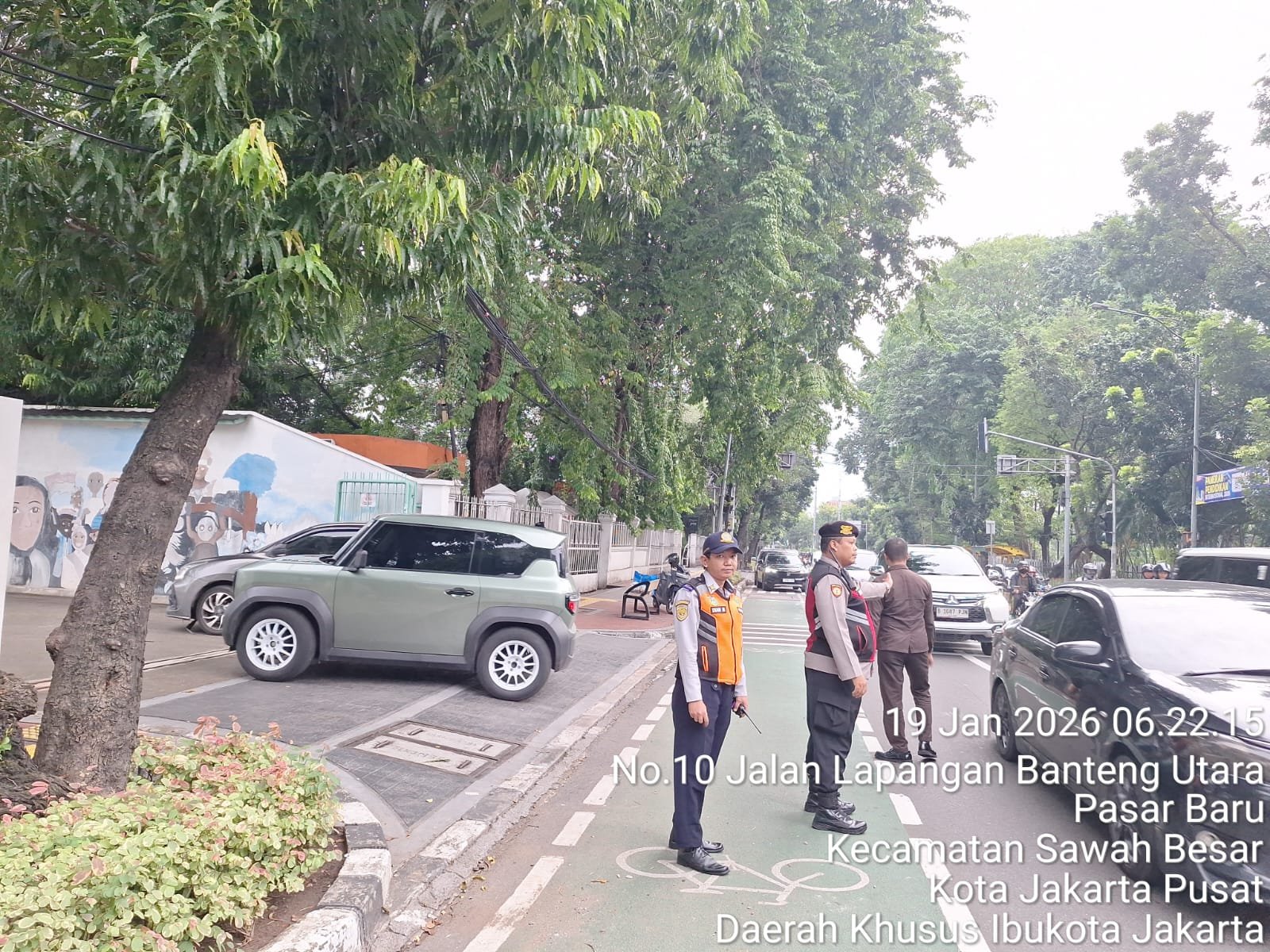 Waka Polsek Sawah Besar dan jajaran Provos lakukan pengecekan dalam Kegiatan tersebut yang dilaksanakan pada Senin pagi, 19 Januari 2026 pukul 06.00–08.00 WIB, dengan lokasi pengaturan meliputi TL Wahidin, TL Pertigaan Katedral, TL Depan Ursula Banteng Utara, dan TL MBAL Gunung Sahari. Total 11 personel gabungan dikerahkan, terdiri dari Satlantas, PMJ, dan Polsek Sawah Besar. Hasil pemantauan menunjukkan arus ramai lancar dan situasi aman terkendali.