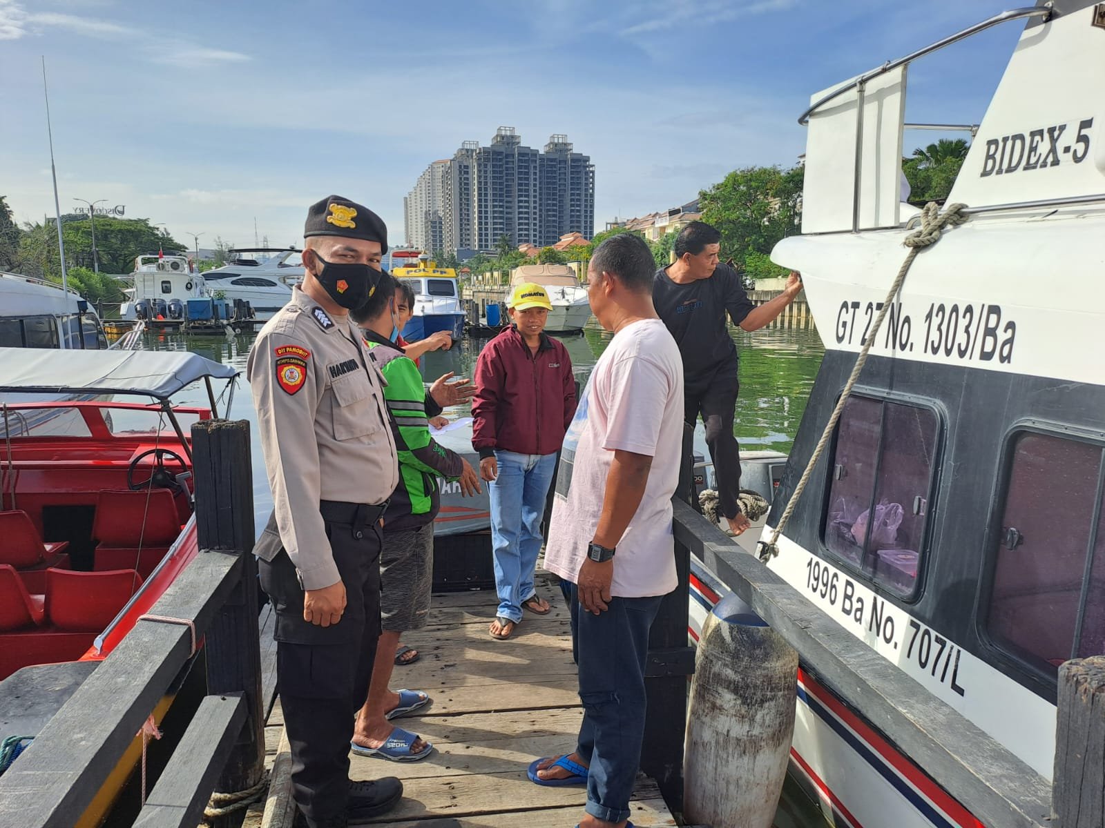 “Kami Sat Pam Obvit Polres Kepulauan Seribu melaksanakan kegiatan pengamanan di dermaga keberangkatan Marina Ancol terhadap para wisatawan yang akan berlibur ke wilayah Kepulauan Seribu”, ujar Asep.