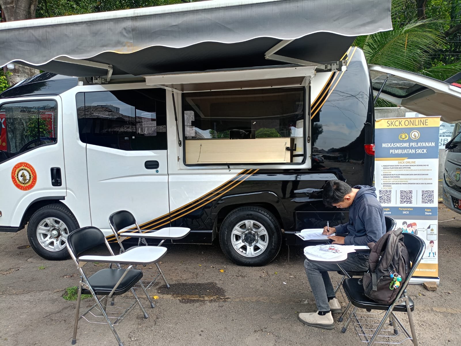 Layanan SKCK Online Keliling Polda Metro Jaya digelar untuk mempermudah masyarakat yang ingin membuat atau memperpanjang SKCK tanpa harus datang ke kantor polisi. Hari ini, layanan dibuka mulai pukul 09.00 hingga 14.00 WIB di depan lapangan parkir Taman Makam Pahlawan Kalibata, Jakarta Selatan.
