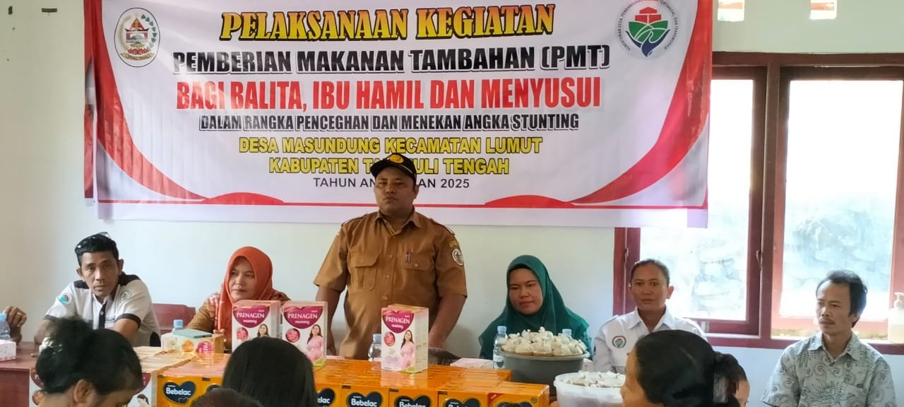 Pemerintah Desa (Pemdes) Masundung, Kecamatan Lumut, Kabupaten Tapanuli Tengah (Tapteng), membagikan makanan tambahan untuk ibu hamil, ibu menyusui dan balita melalui Program Dana Desa 2025.