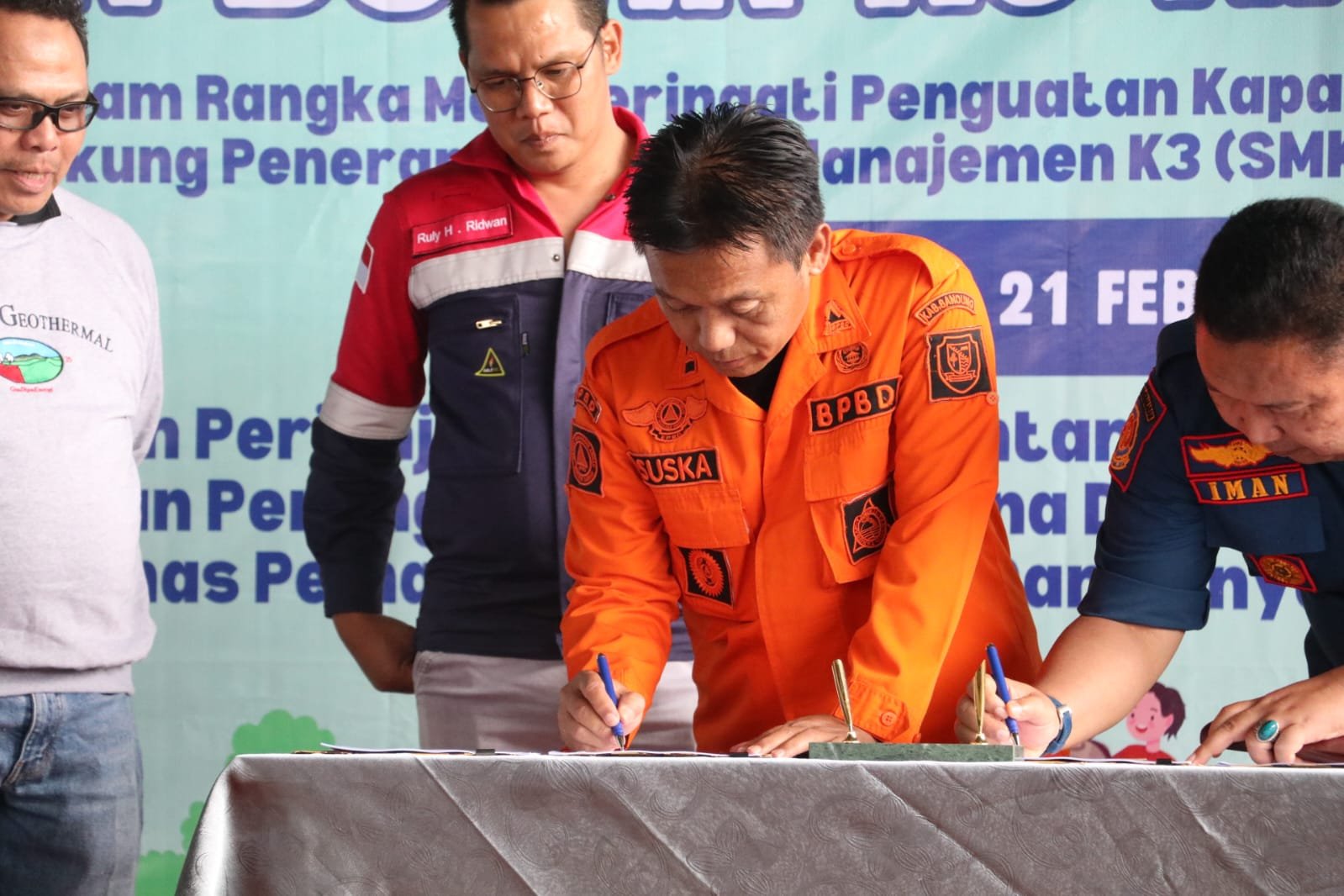 KAB. BANDUNG – Pemerintah Kabupaten (Pemkab) Bandung melalui Badan Penanggulangan Bencana Daerah (BPBD) dan Dinas Pemadam Kebakaran dan Penyelamatan (Disdamkar) melaksanakan penandatangan perjanjian kerjasama antar PT. Geo Dipa Energi (Persero) Unit Patuha, Jumat (21/2/2025).