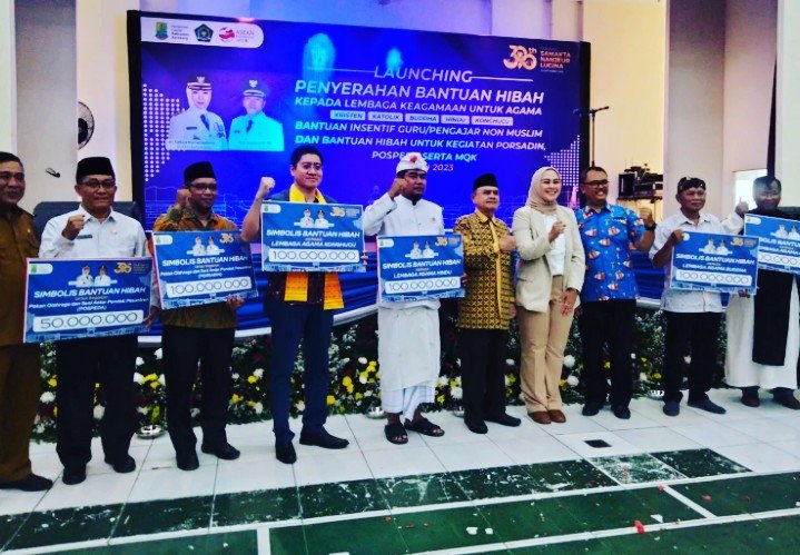 Selain menyalurkan bantuan BOPF, Pemkab Karawang, melalui Bagian Kesejahteraan Rakyat (Kesra) Setda Karawang juga menggelar launching penyerahan dana Hibah sebesar Rp 940 juta kepada lembaga keagamaan untuk agama Kristen, Katolik, Hindu, Budha dan Konghucu.