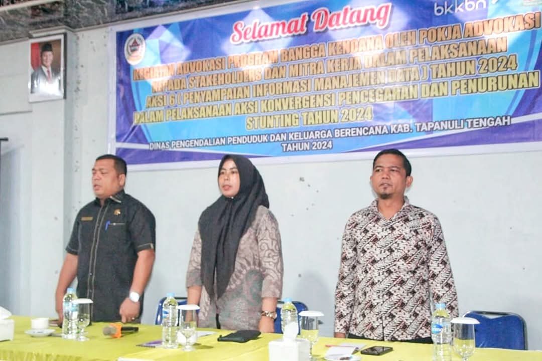 Advokasi Program Bangga Kencana oleh Pokja Advokasi kepada Stakeholders dan Mitra Kerja Pelaksanaan Aksi 6 Penyampaian informasi Manajemen Data tahun 2024 dalam Pelaksanaan Aksi Konvergensi Pencegahan dan Penurunan Stunting di Kabupaten Tapteng yang dilaksanakan di Hotel Hasian Pandan, kamis (5/12/2024).
