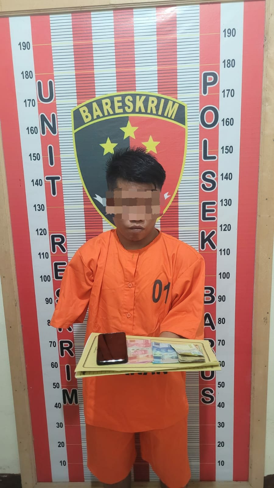 Barang bukti yang berhasil diamankan dari pelaku berupa uang tunai sebesar Rp 676.000 dan satu unit handphone merk Samsung berwarna biru, yang digunakan sebagai alat komunikasi dalam menjalankan judi online jenis Kim.