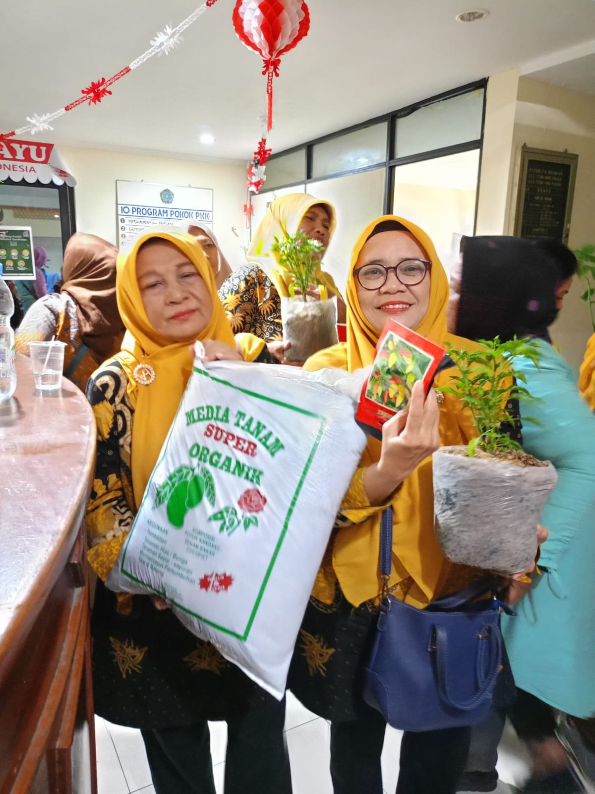 (Geratak) TP PKK Kel.Tanjung Priok, Jakarta Utara dengan pemberian bantuan stimulan berupa bibit tanaman cabe, benih, media tanam, pupuk kompos dan polibag kepada 16 Kelompok PKK RW yang berasal dari Pemanfaatan Dana Swadaya Bahagia Minyak Jelantah, dihadiri Kasatpel KPKP Kecamatan Tanjung Priok, Jumat (12/08/2023).