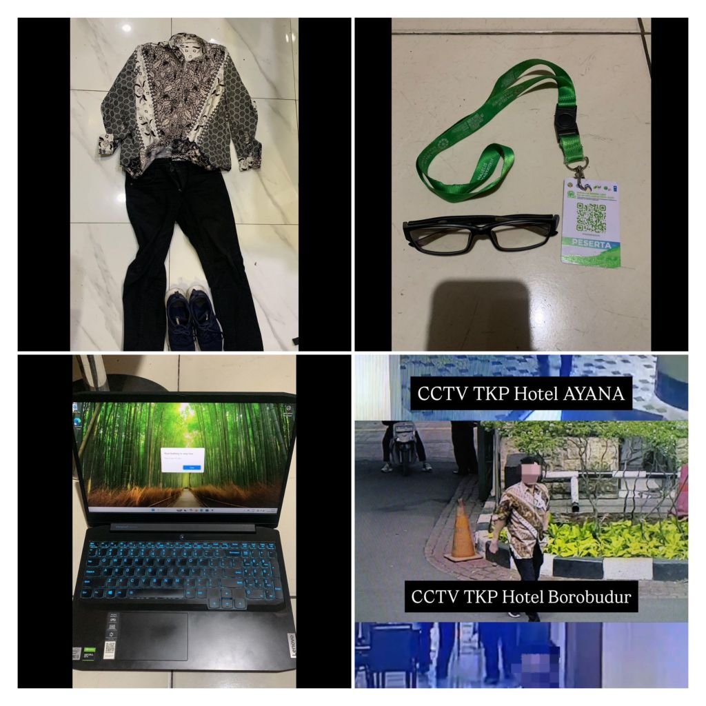 Setelah identitasnya terungkap, pelaku NW ditangkap pada Jumat (13/2/2026) di kawasan Matraman, Jakarta Timur. Polisi menyita sejumlah barang bukti, di antaranya 1 unit laptop milik korban, lanyard, kacamata hitam, tas hitam, baju batik, celana jeans, dan sepatu yang digunakan saat beraksi.