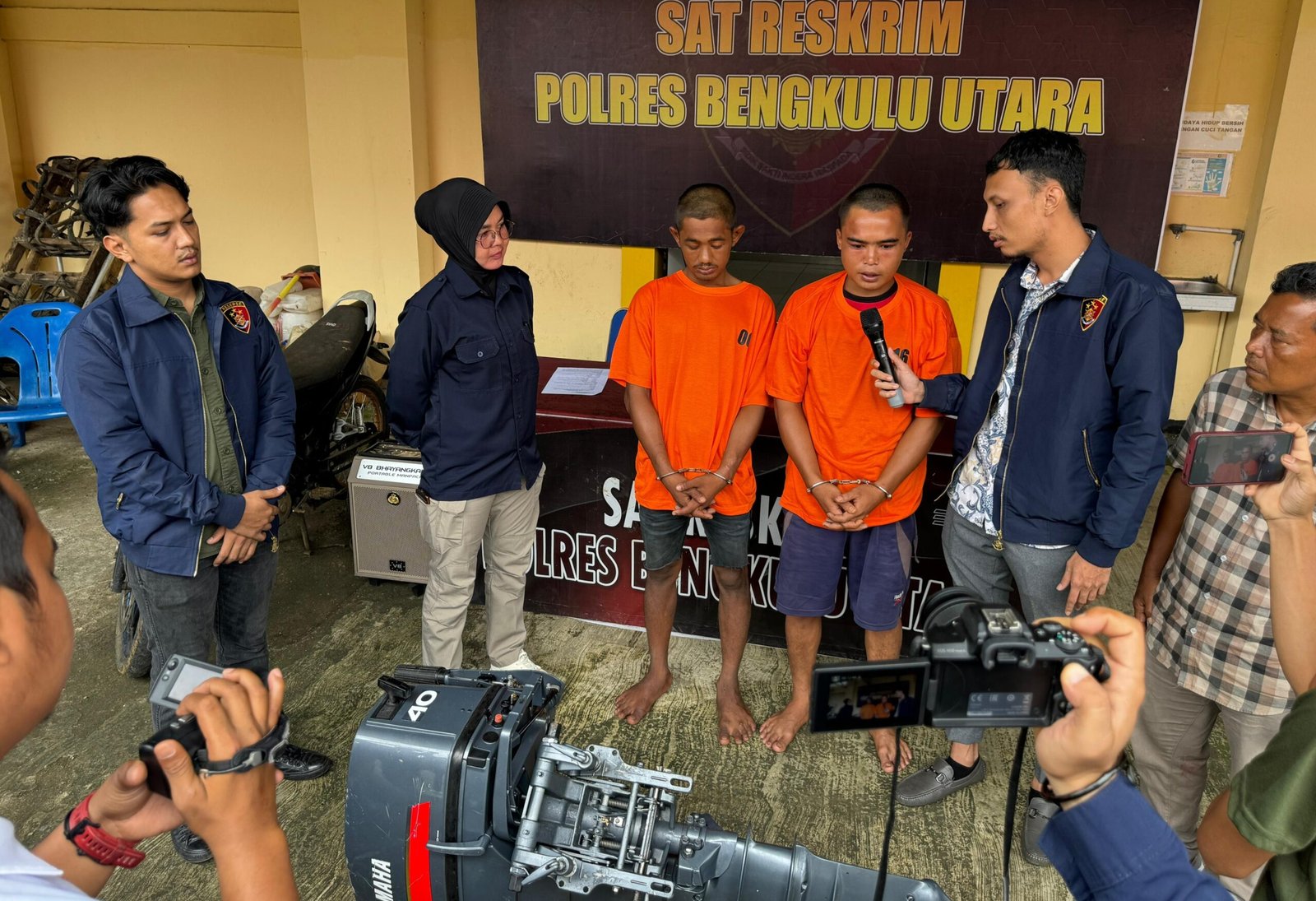 Lambe Patabang Birana, melanjutkan, “Setelah menerima laporan, Satreskrim Polres Bengkulu Utara segera mengejar para pelaku dan berhasil menangkap 2 orang pelaku pencurian mesin kapal.”
