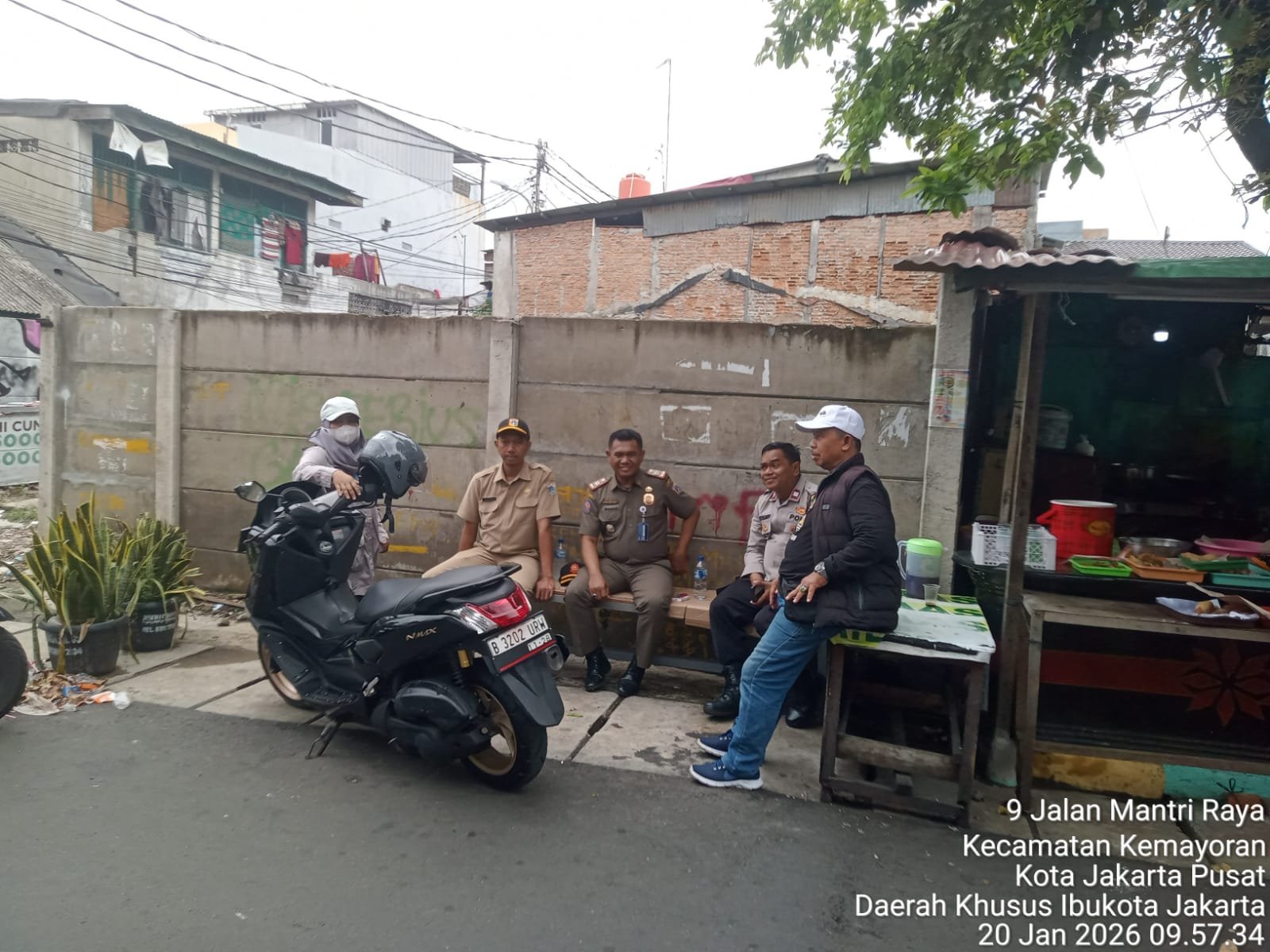 Kegiatan sambang dialogis tersebut dilakukan di Jalan Mantri Raya, Kelurahan Kemayoran, Jakarta Pusat. Dalam kesempatan itu, Bhabinkamtibmas Kelurahan Kemayoran Aiptu Dwi Yulianto bersama Kepala Satpol PP setempat bersilaturahmi dan berkoordinasi dengan Ketua RW 06 Bapak Wahyudin serta Ketua RT 012/09 Ibu Mutiah.
