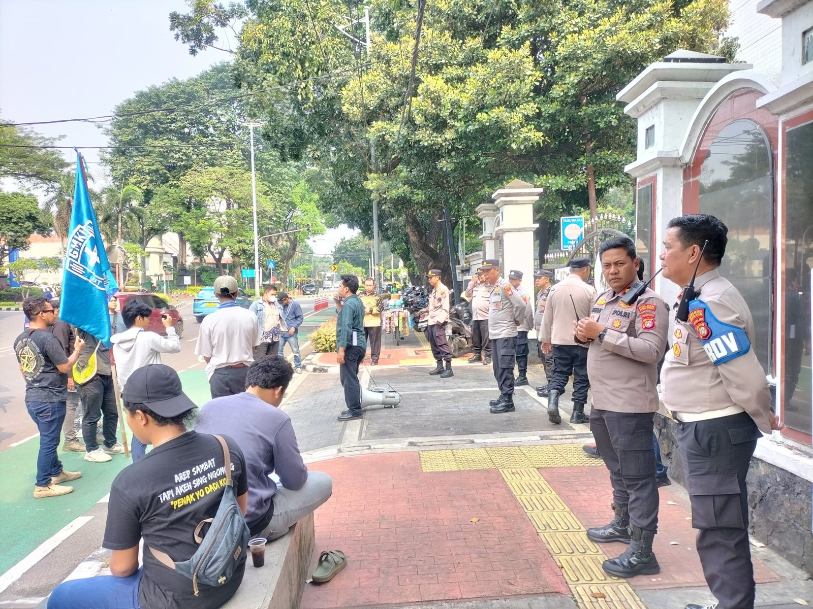 Kapolsek Sawah Besar Kompol Rahmat Himawan mengatakan pengamanan dilakukan secara humanis dengan mengedepankan komunikasi dua arah. “Kami bersama 22 personel gabungan Polsek Sawah Besar dan Pamdal Kemenag mengawal aksi ini dengan pendekatan persuasif. Massa difasilitasi untuk menyampaikan pendapatnya secara tertib,” ujarnya.
