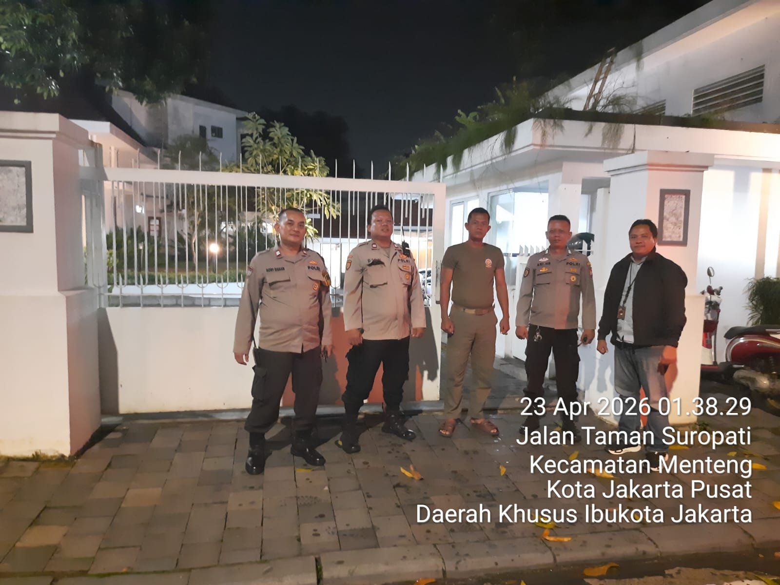 Jakarta Pusat – Dalam rangka menjaga keamanan dan ketertiban masyarakat (kamtibmas), jajaran Polsek Metro Menteng menggelar patroli cipta kondisi (cipkon) dengan fokus pengamanan kawasan kediaman pejabat di sekitar Jalan Taman Suropati, Menteng, Jakarta Pusat. Kegiatan ini dilakukan sebagai langkah preventif untuk memastikan situasi tetap aman dan kondusif, khususnya pada malam hari. Kamis (23/4/2026)
