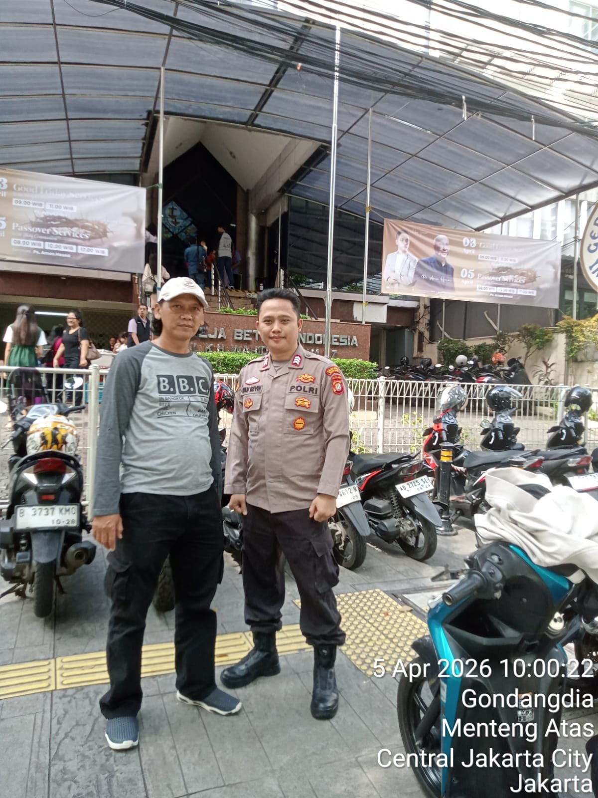 Jakarta Pusat — Polsek Metro Menteng melaksanakan pelayanan dan pengamanan kegiatan kebaktian Misa Paskah di Gereja Bethel Menteng yang berlokasi di Jalan KH. Wahid Hasyim No. 67, Menteng, Jakarta Pusat. Kegiatan ini dilakukan sebagai bentuk komitmen Polri dalam memberikan rasa aman dan nyaman bagi umat Kristiani yang merayakan Hari Raya Paskah. Minggu (5/4/2026)