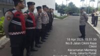 Jakarta – Aparat kepolisian melaksanakan apel persiapan pengamanan pertandingan sepak bola antara Barca Legend melawan DRX World Legend di kawasan Gelora Bung Karno (GBK), Jakarta Pusat, Sabtu (18/4/2026) sore.
