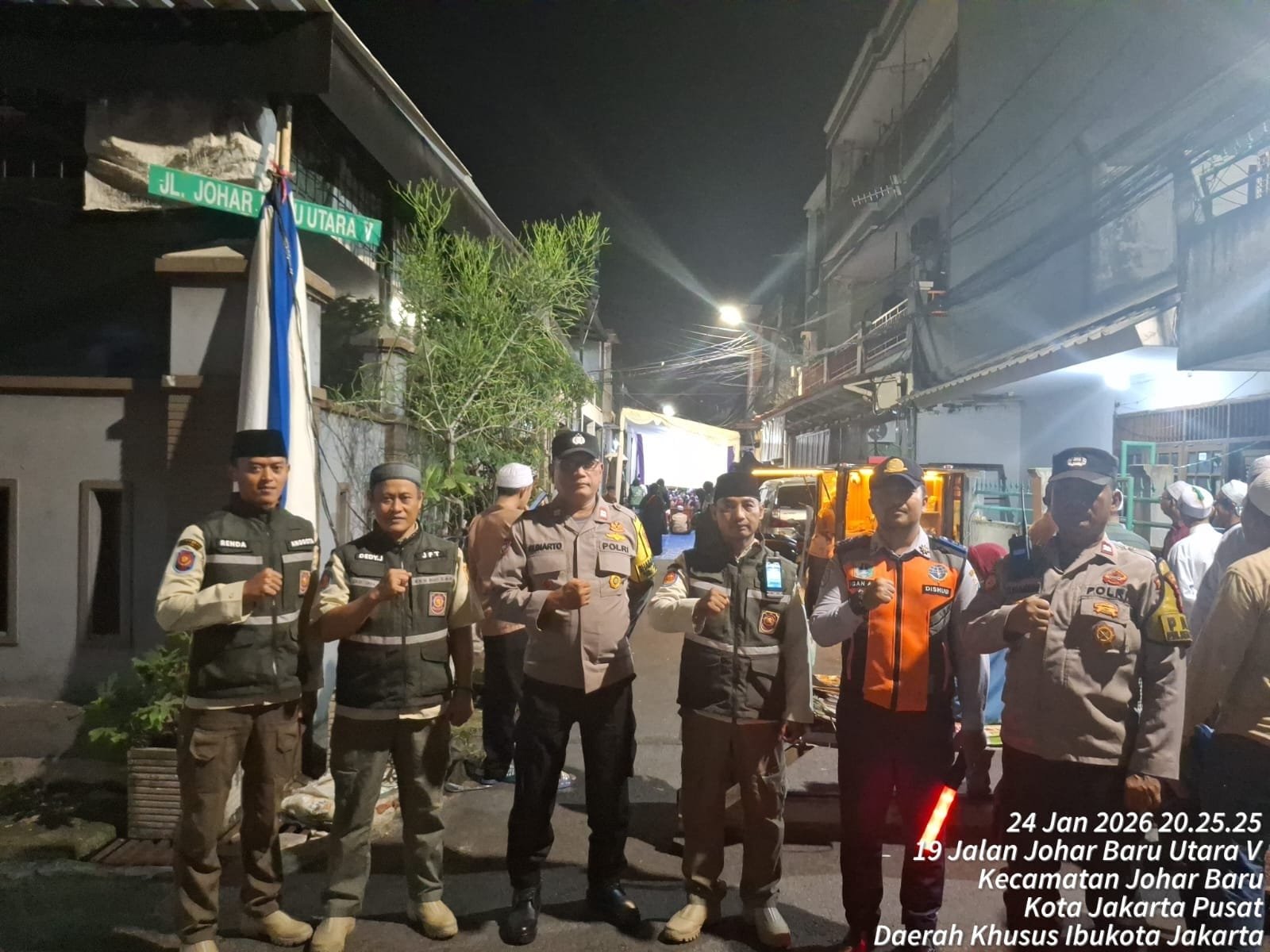 refubliknews.com, || Jakarta Pusat — Polsek Johar Baru dipimpin oleh Aiptu Zulfikar Hasibuan selaku Padal bersama Aiptu Likas Indrijanto, Aiptu Sunarto, Aiptu Sukirno, Bripka Budi Heripriyono, Bripka Arief Setiyo Wibowo, Brika Henry Nurivan, Brigadir Maziz Imam Sobari, Bripda Wali dengan melibatkan personil dari Satpol. PP dan Dishub, melaksanakan pengamanan kegiatan Peringatan Maulid Nabi Muhammad SAW 1447 H/2026 M yang digelar di Masjid Al Mubarok, RW 003, Kelurahan Johar Baru, Kecamatan Johar Baru, Jakarta Pusat, pada Sabtu (24/1/2026) malam. Kegiatan keagamaan tersebut dihadiri sekitar 500 jamaah dan berlangsung hingga dini hari dengan situasi aman dan kondusif.