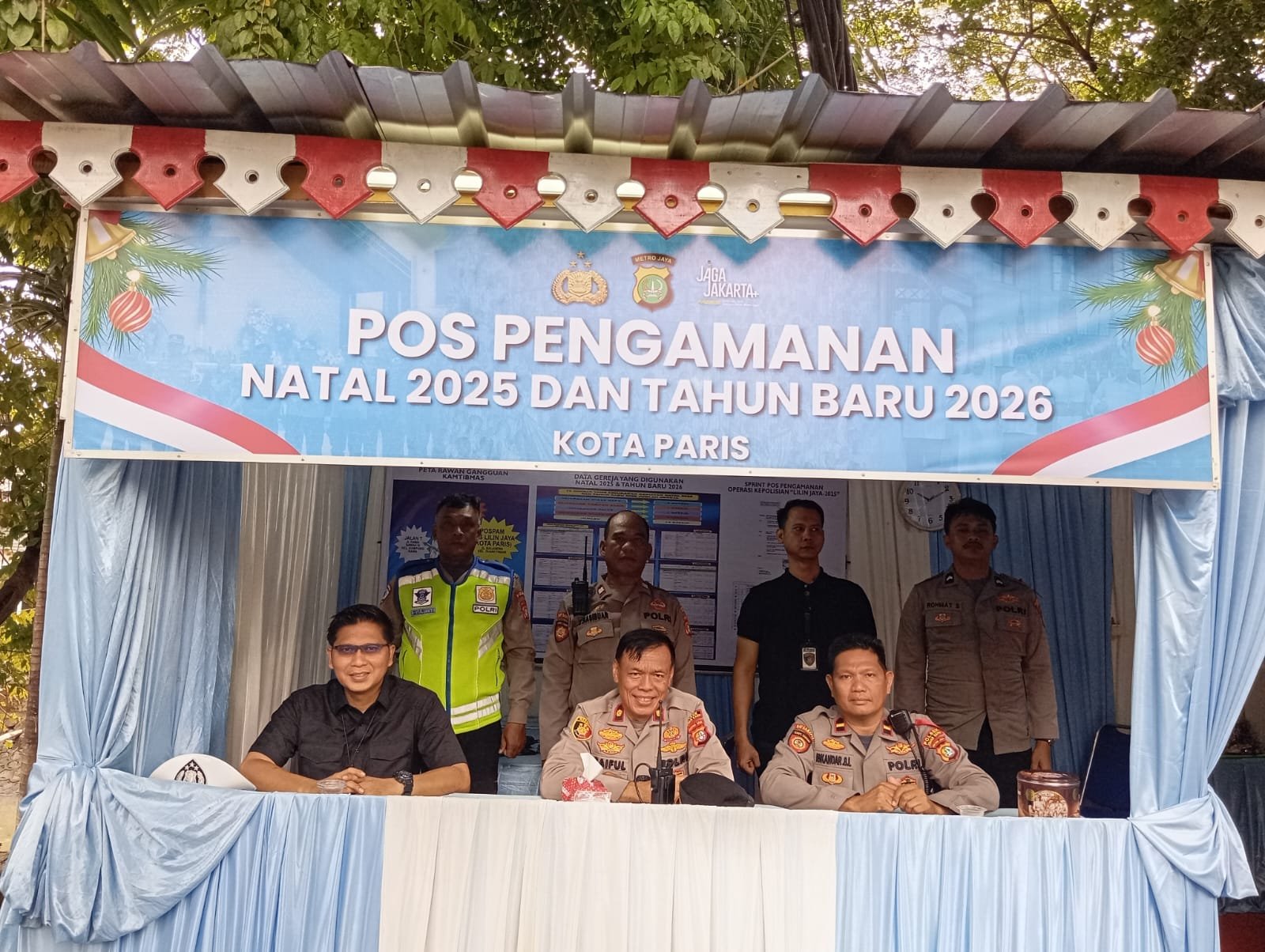 Jakarta Pusat — Dalam rangka memastikan pelaksanaan pengamanan Perayaan Natal 2025 dan Tahun Baru 2026 berjalan aman dan kondusif, Polsek Johar Baru Polres Metro Jakarta Pusat melaksanakan kegiatan pengamanan terpadu di Pos Pengamanan (Pospam) Kota Paris Johar Baru, pada Senin (24/12/2025) pukul 10.00 WIB, Jakarta Pusat.