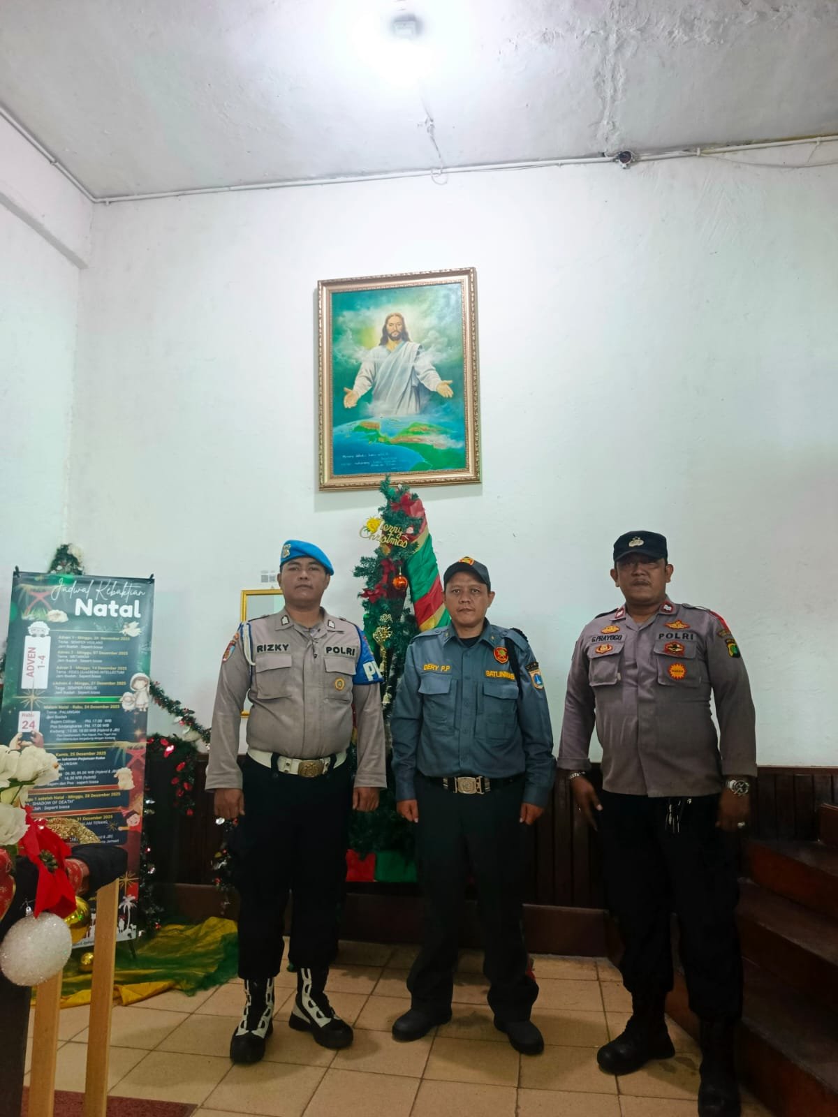 Jakarta Pusat – Guna memastikan pelaksanaan ibadah Natal berjalan aman dan khidmat, jajaran Polsek Metro Tanah Abang melakukan pengamanan di Gereja GKI Mess Cenderawasih, Kebon Melati, Tanah Abang, Jakarta Pusat, pada Kamis (25/12/2025).