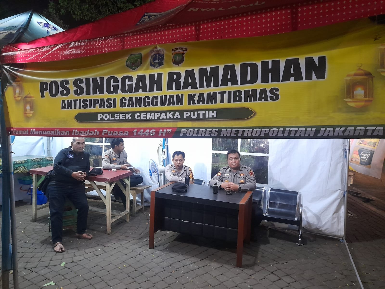 Kapolsek Cempaka Putih, Kompol Sulistyo Yudo Pangestu, menambahkan bahwa pengamanan berlangsung dari pukul 22.00 hingga 06.00 WIB dengan melibatkan personel gabungan yang terdiri dari Padal Pos Singgah Aipda Siswanto (Kapolsubsektor Salemba), serta personel Polsek Cempaka Putih Bripka Suroto, Bripka Balas, dan Brigadir Aditia. Selain itu, pengamanan juga didukung oleh perwakilan LMK, Bapak Dayut.