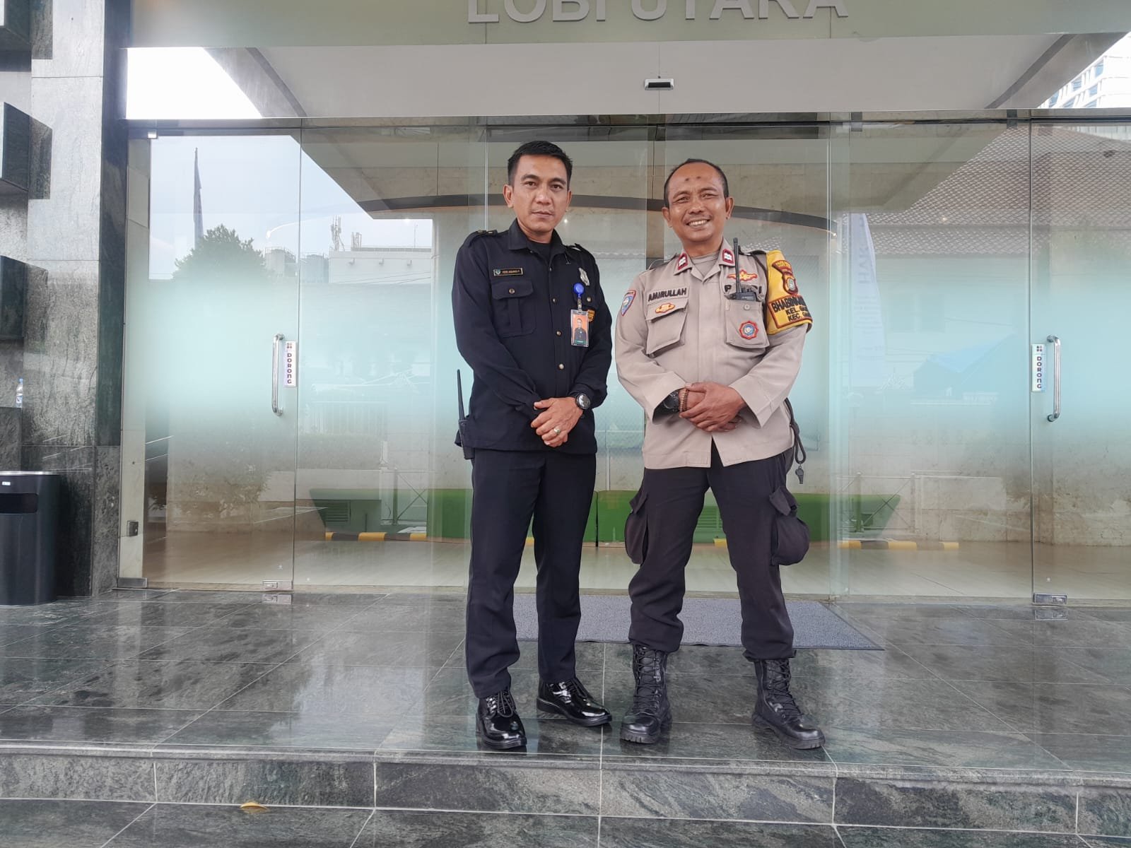 Aiptu Amirullah kemudian bertemu dan berkoordinasi dengan Chief Security, Bapak Sunarto, serta petugas keamanan Bapak Heri Agung. Komunikasi berlangsung hangat dan terbuka, membahas langkah-langkah pengamanan jika sewaktu-waktu terjadi peningkatan situasi. Mereka mencocokkan alur pengamanan, menyiapkan pola respons cepat, dan memastikan seluruh unsur keamanan berada pada pemahaman yang sama.
