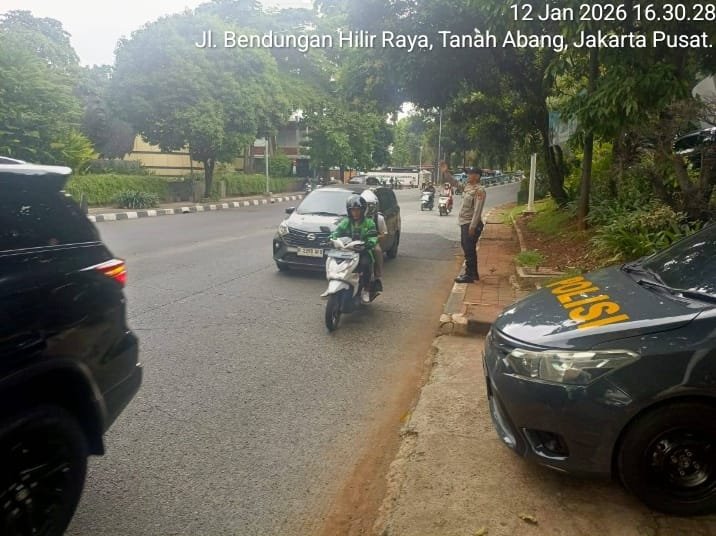 Jakarta Pusat — Polsek Metro Tanah Abang melaksanakan kegiatan pengaturan arus lalu lintas, strong point / police hazard, serta antisipasi kejahatan jalanan pada Senin, 12 Januari 2026, mulai pukul 16.00 WIB sampai dengan selesai, bertempat di Traffic Light (TL) Pejompongan, Bendungan Hilir, Tanah Abang, Jakarta Pusat.