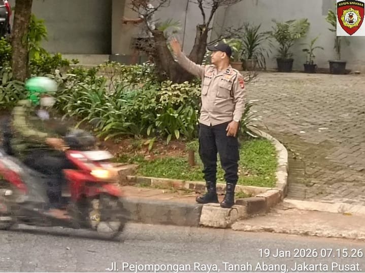 Jakarta Pusat — Pada hari Senin tanggal 19 Januari 2026, mulai pukul 06.30 WIB, anggota Polsek Metro Tanah Abang telah melaksanakan kegiatan pengaturan arus lalu lintas strong point / police hazard pada pagi hari yang bertempat di TL. Pejompongan, Bendungan Hilir, Tanah Abang, Jakarta Pusat.