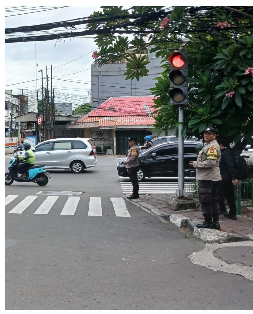 Sejak pagi, petugas berdiri di titik-titik strategis persimpangan, memastikan setiap pergerakan kendaraan berjalan aman dan teratur. Dengan koordinasi yang solid, petugas mengurai potensi kemacetan serta memberikan ruang aman bagi pejalan kaki dan pengendara yang melintas.