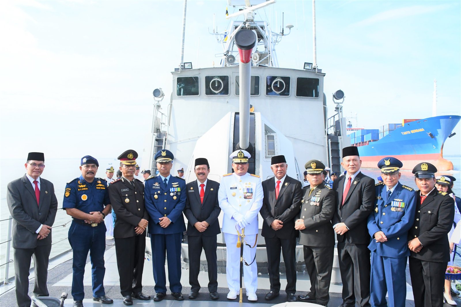 TNI AL, Belawan,- Komandan Pangkalan Utama TNI Angkatan Laut (Danlantamal) I Laksamana Pertama TNI Johanes Djanarko Wibowo memimpin Upacara Tabur Bunga dalam rangka memperingati Ke-78 Hari Pahlawan Tahun 2023 dengan tema “Semangat Pahlawan Untuk Masa Depan Bangsa dalam Memerangi Kemiskinan dan Kebodohan’’ bersama Forkopimda Provinsi Sumatera Utara, bertempat diatas Kapal Perang KRI Lemadang-632 dengan pengarungan karangan bunga di Perairan Belawan, Jumat (10/11/2023).