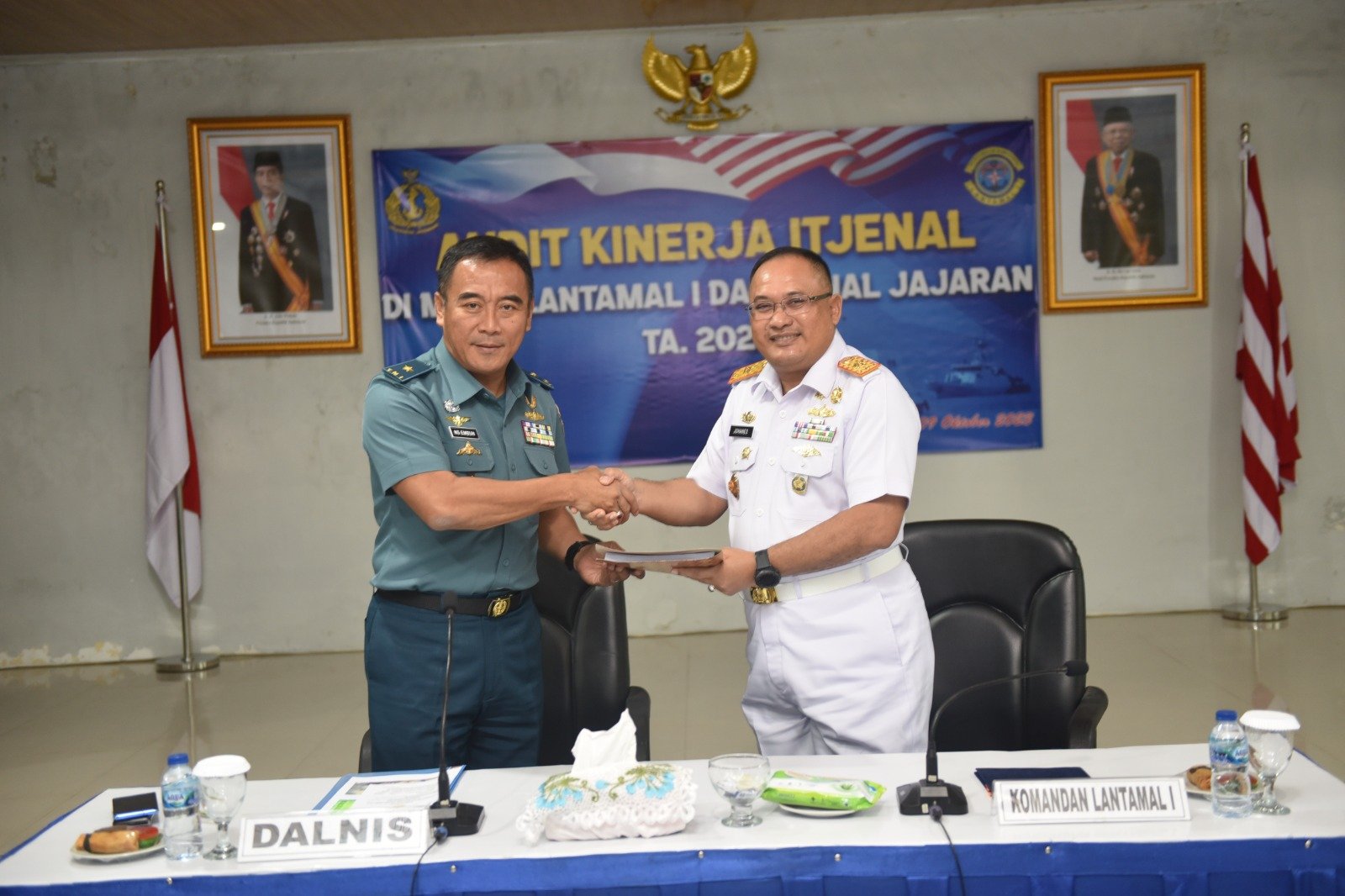 TNI AL, Belawan,- Komandan Pangkalan Utama TNI Angkatan Laut (Danlantamal) I Belawan Laksamana Pertama TNI Johanes Djanarko Wibowo menghadiri Penutupan Audit Kinerja Itjenal di Lantamal I dan Lanal jajaran tahun 2023 dipimpin oleh Irjenal Laksda TNI Rubiyanto diwakili Iropslat Irjenal Laksma TNI Nursyawal Embun selaku Pengendali Teknis (Dalnis), bertempat di Gedung R. Mulyadi Mako Lantamal I, Jalan Serma Hanafiah No.01 Belawan, Sumatera Utara, Selasa (24/10/2023).
