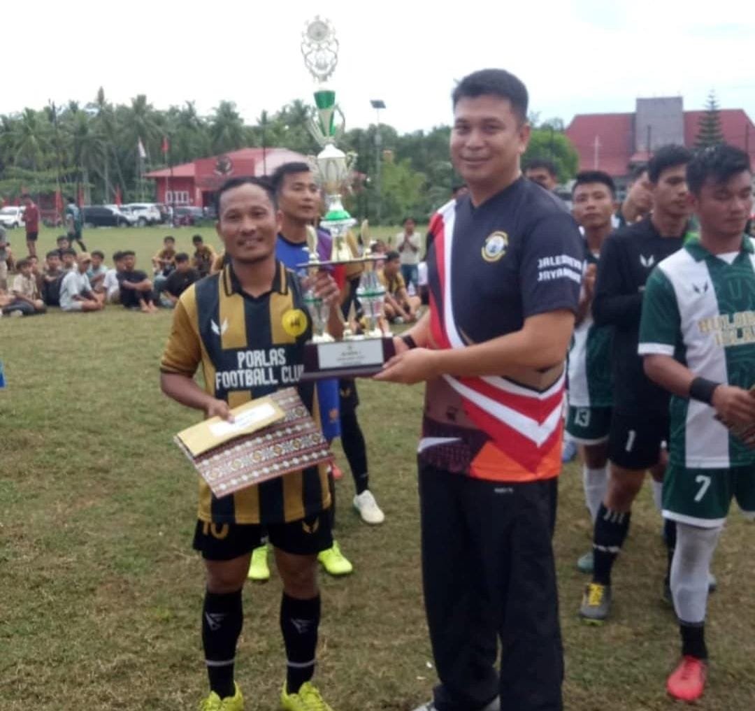 Pemenang Turnamen Sepak Bola Danlanal Nias Cup I Tahun 2025, Juara 1 Porlas FC, Juara 2 Holu Batu FC, Juara 3 Permutu FC, Juara Harapan Bhayangkara FC.